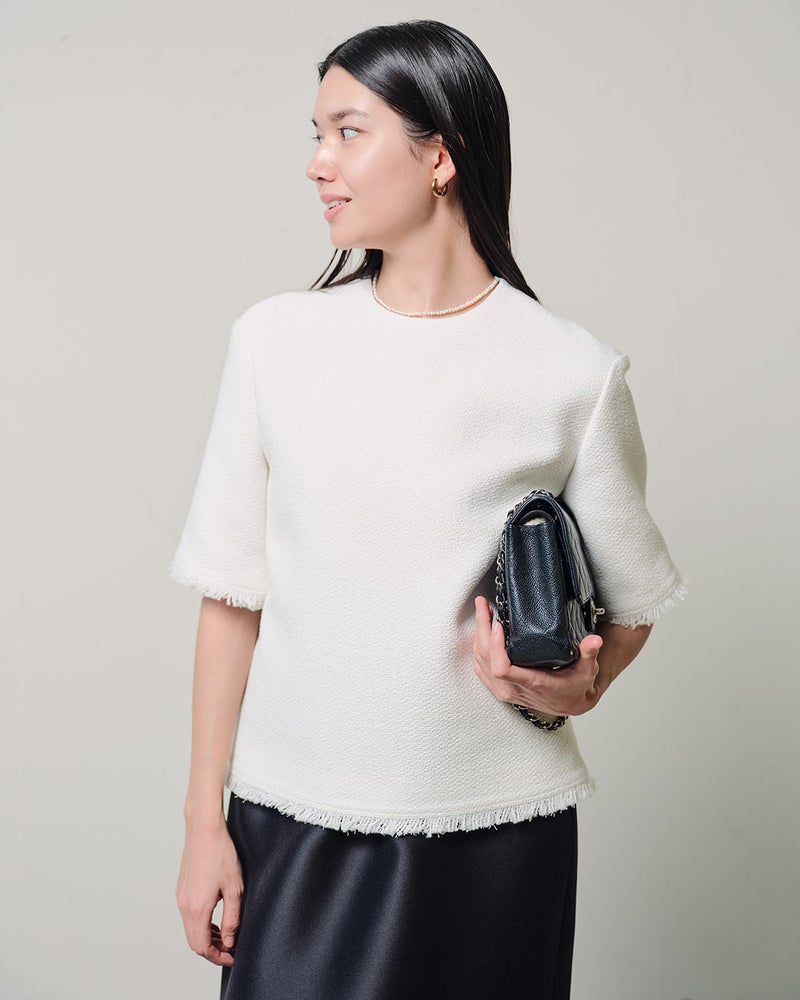 コットン混ツイード・コンパクトブラウス