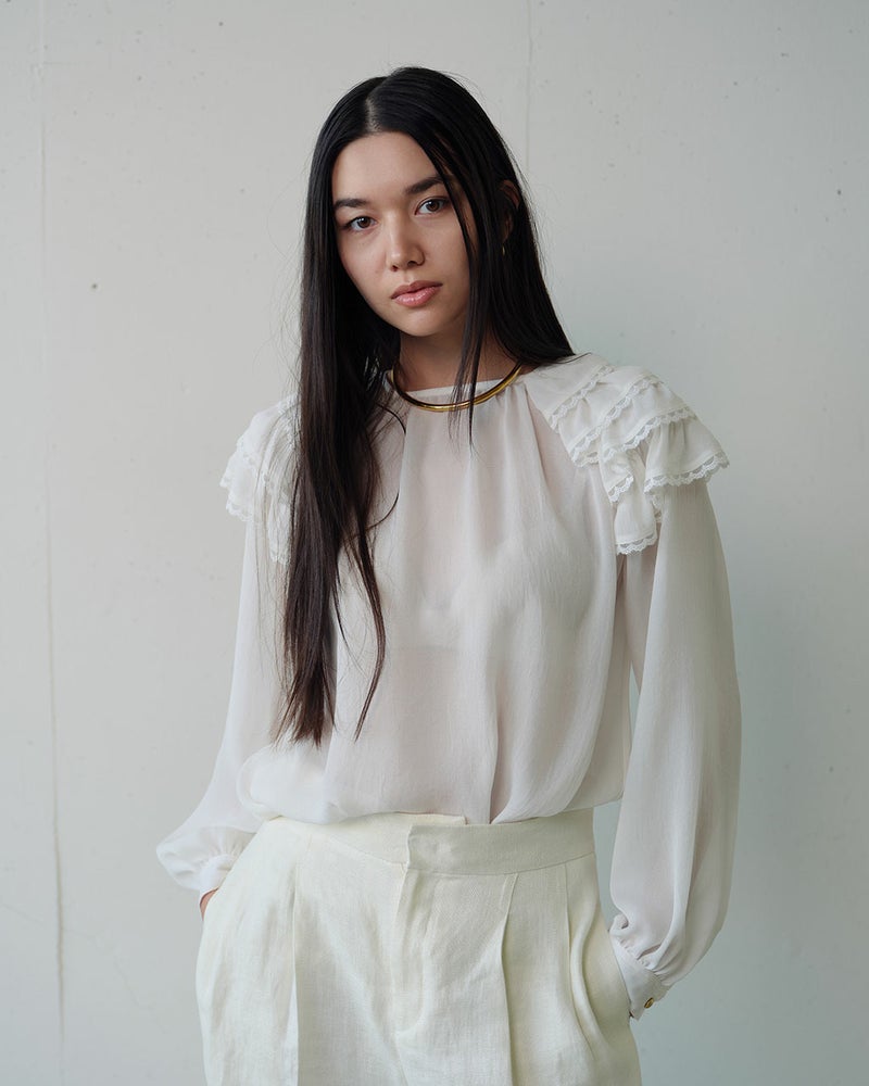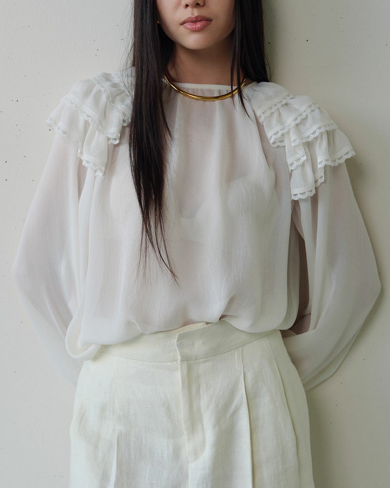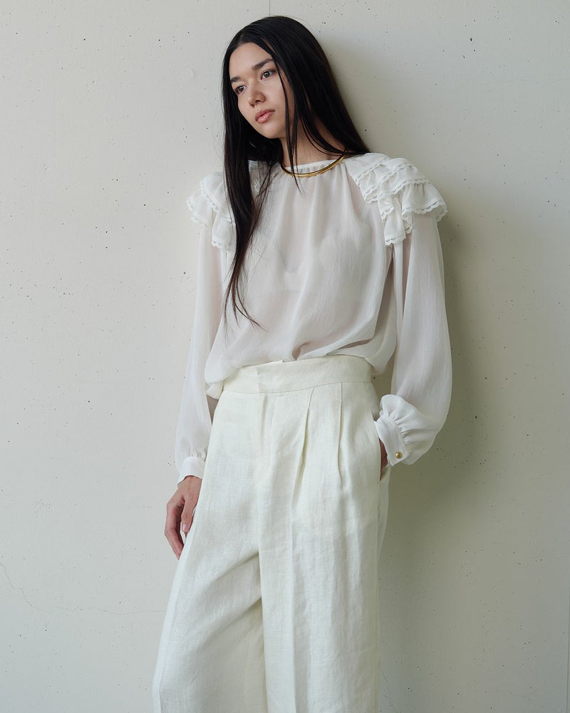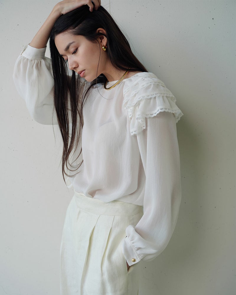 • シアージョーゼット・ショルダーフリルブラウス 詳細画像 ホワイト 1