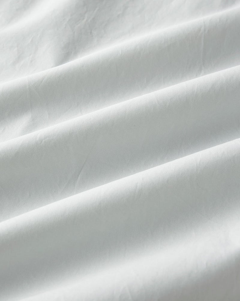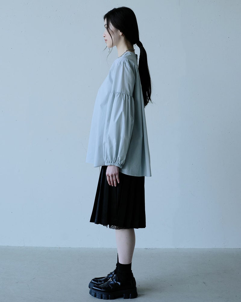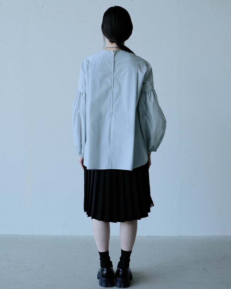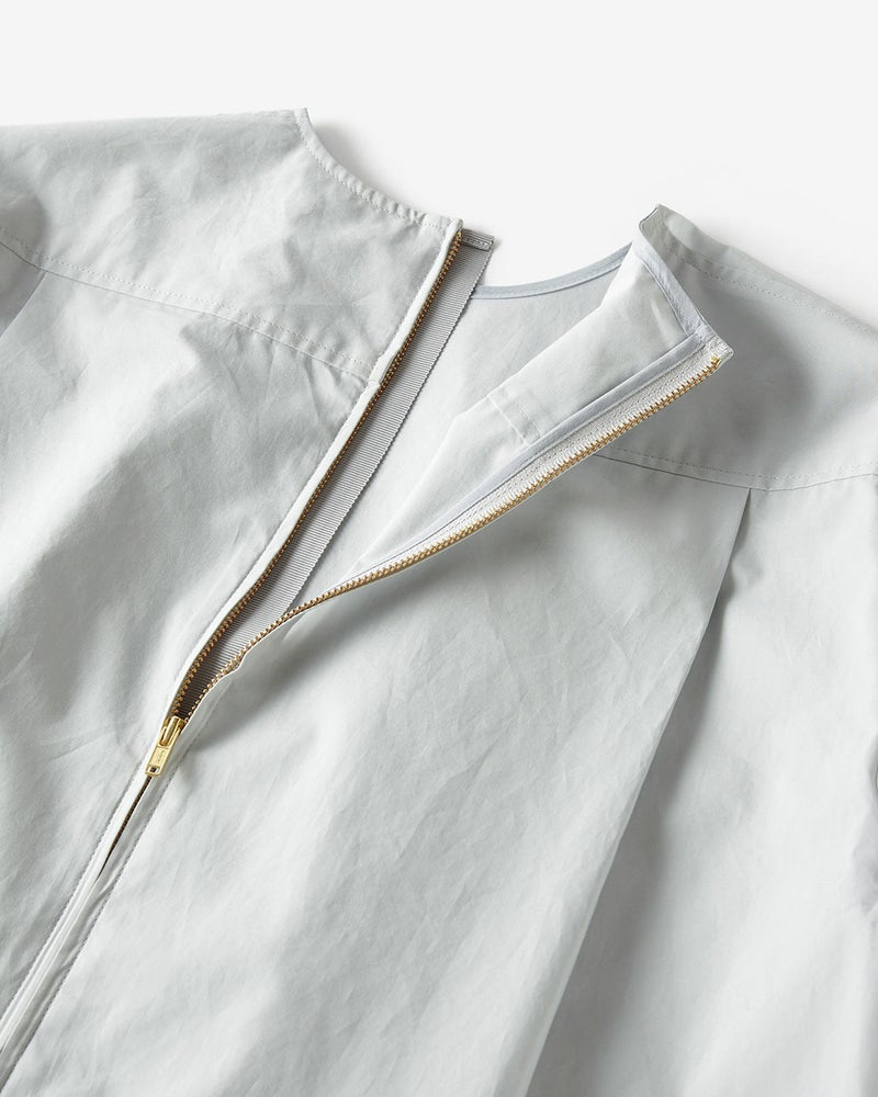 年齢やスタイルを超えて、女性の魅力を引き出すパフスリーブのシンプルシックなブラウス。袖をふんわりとしたシルエットにしたぶん、衿まわりは開き過ぎないクルーネックに仕上げることで、着たときの上品さが際立つ印象に。ごく細いコットン糸を高密度に織り上げたタイプライター生地は、ほどよいハリと肉感があり、どんなシーンでも凛とした存在感。しかも爽快感のある快適な着心地。