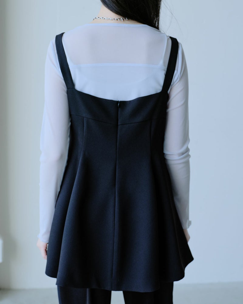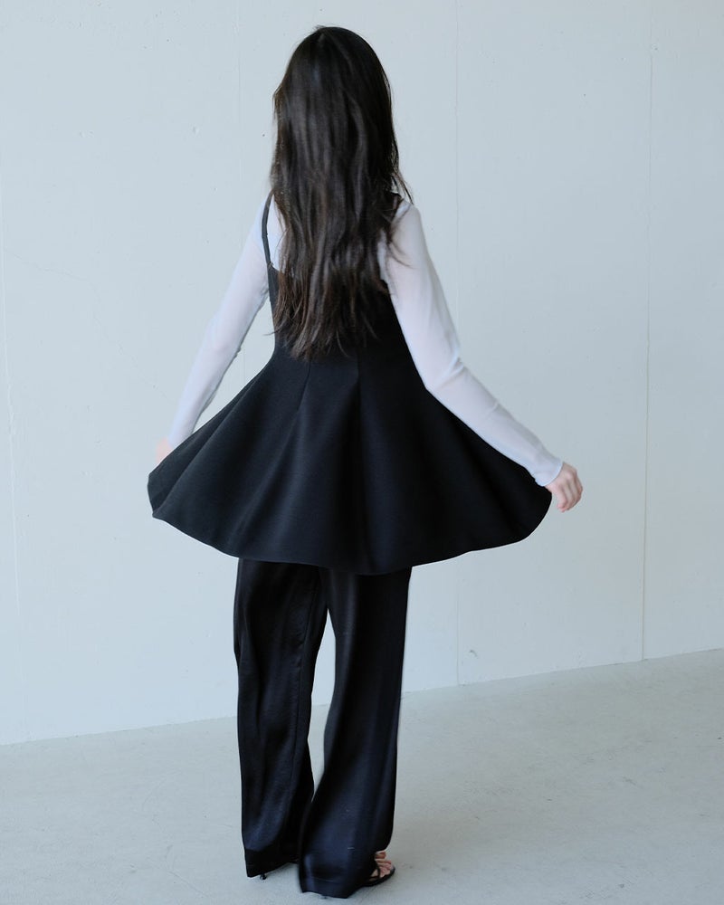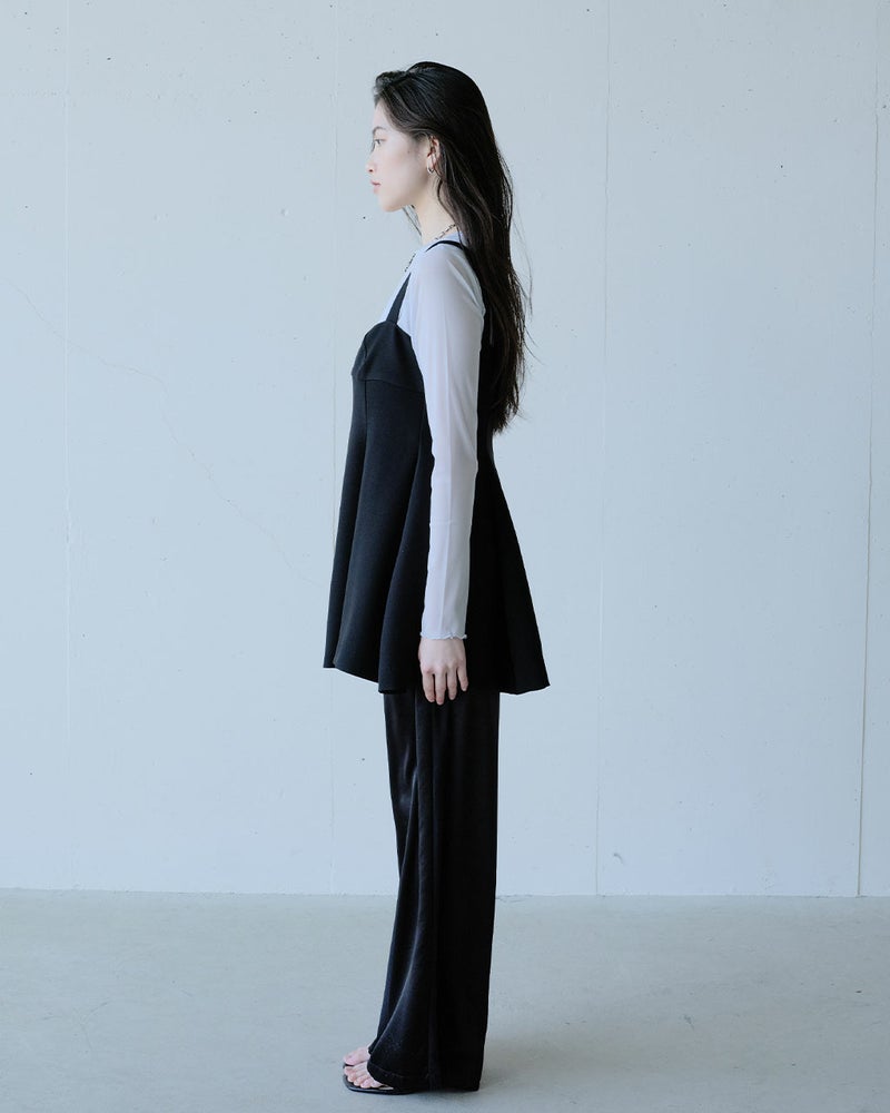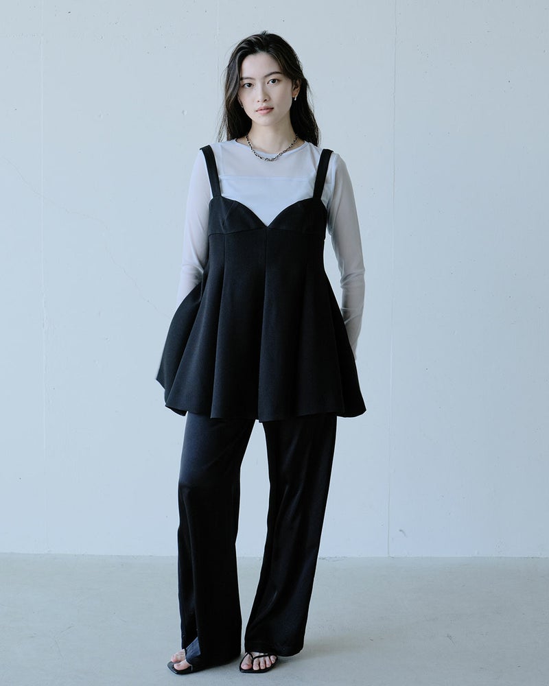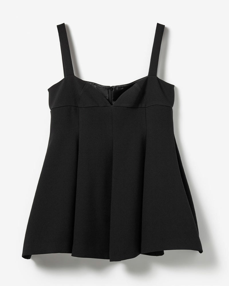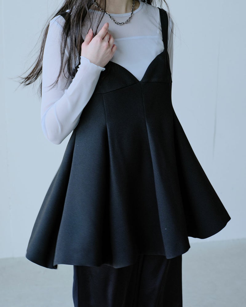 ドレスを身にまとったかのような、フィット&フレアのシルエット。今までにありそうでなかった、キュートなキャミソール。ジレのようにトップスの上に重ねることで、フレッシュな着こなしが完成。素材には構築的な美しさを叶えるダブルジョーゼットを採用。二重織りならではのリッチな生地感が、ひとクラス上のカジュアルスタイルをつくる1枚。