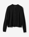 クラシックな上品さがありながら、どこかモードなシルエット。ややドロップショルダーに仕上げたカーディガンは、同素材のトップス(14832)と組み合わせてアンサンブル風に着ても、ワンピースやパンツスタイルにさらりと羽織ってもシックなイメージ。超細番手の柔らかな高品質ウールを使い、繊細な透かし編みを施しました。素材そのものに立体感があるためシワになりにくく、旅のワードローブにも最適。