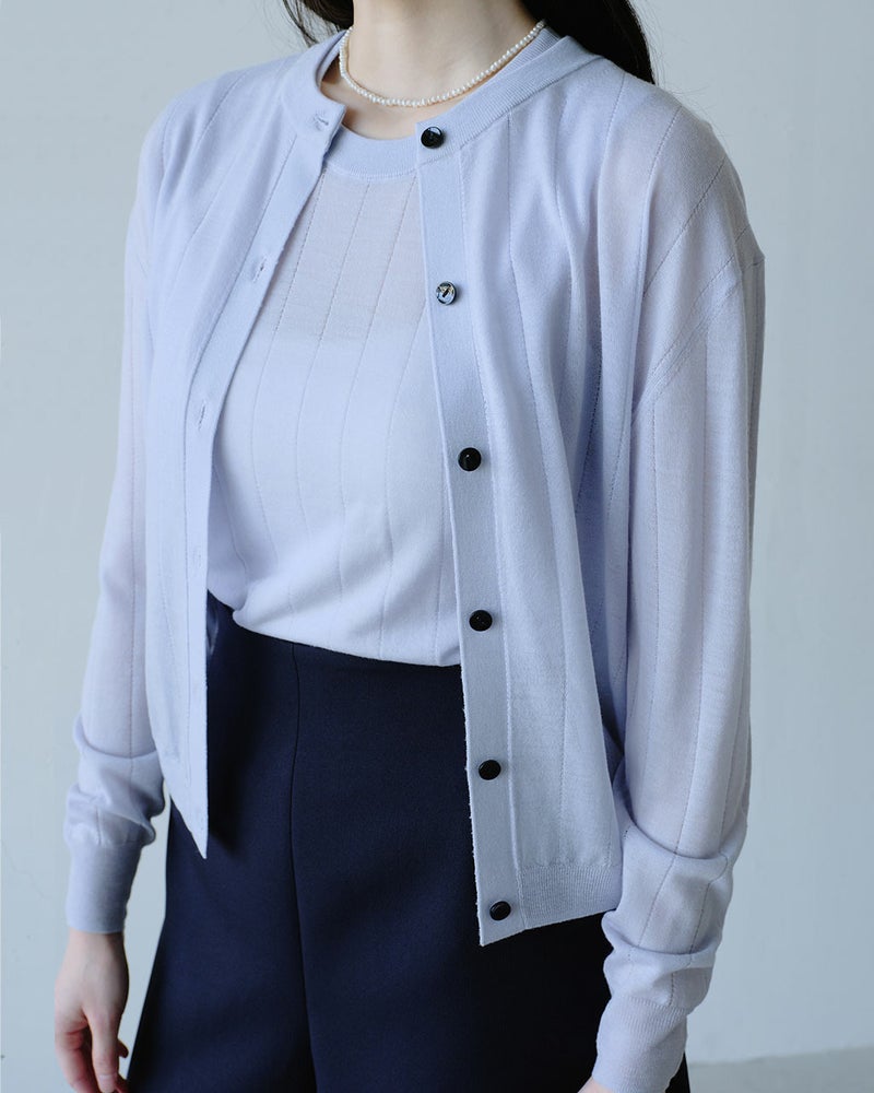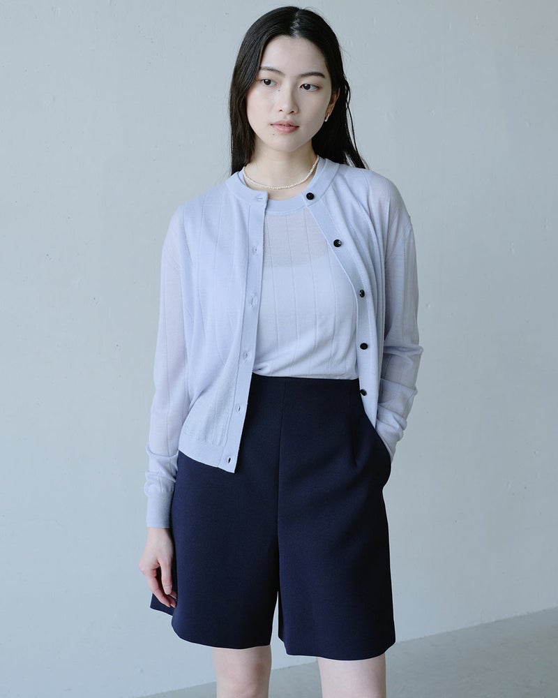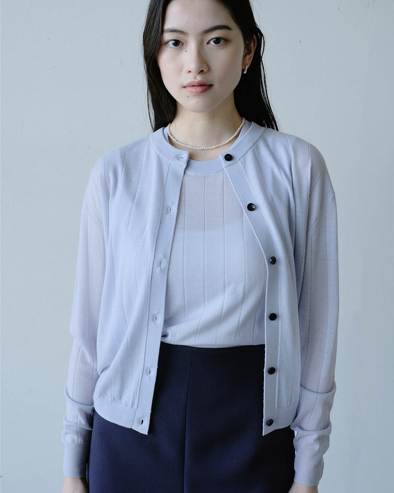 着ているだけでほっとする。そんなトップスが1枚あるだけで、毎日が楽しくなるはず。超細番手の極上ウールを使ったノースリーブトップスは、肌を包むなめらかな感触のよさはもちろん、うなじの大きめの涙開きや繊細な縦ラインの透かし編みなど、大人を品よく見せるディテールが満載。同素材のカーディガン(14829)とのアンサンブルもおすすめ。