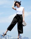 とろみ素材のボトムに挑戦したいけれど、ボディラインが出てしまうのは不安。そんな悩みを解決するアンクル丈のワイドパンツです。