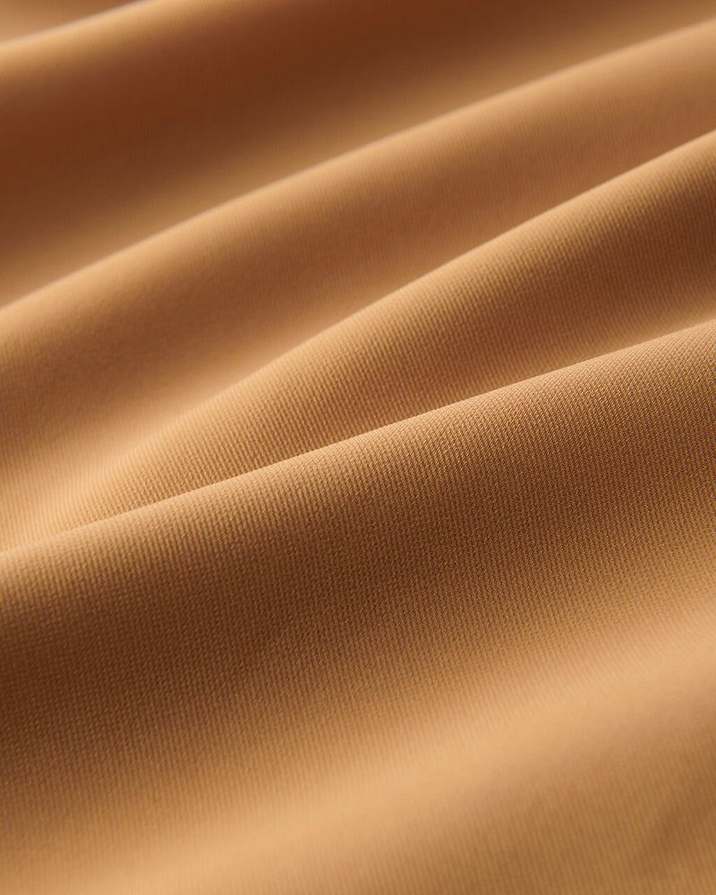 ボディ&下着のラインを拾いにくく、落ち感の美しいマットな質感のエステルジョーゼットを使用。身長を問わない足首丈が、軽やかな雰囲気を演出してくれます。