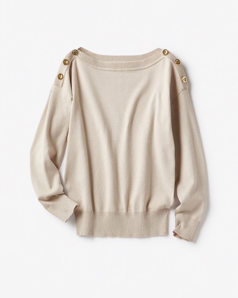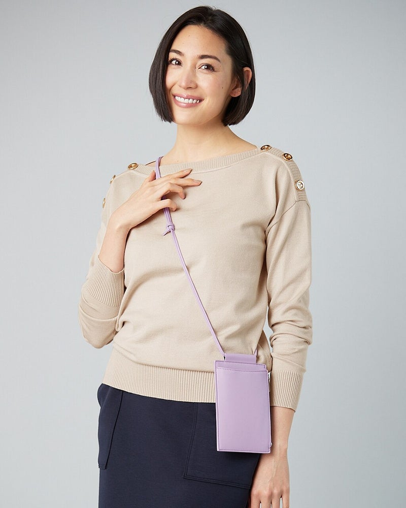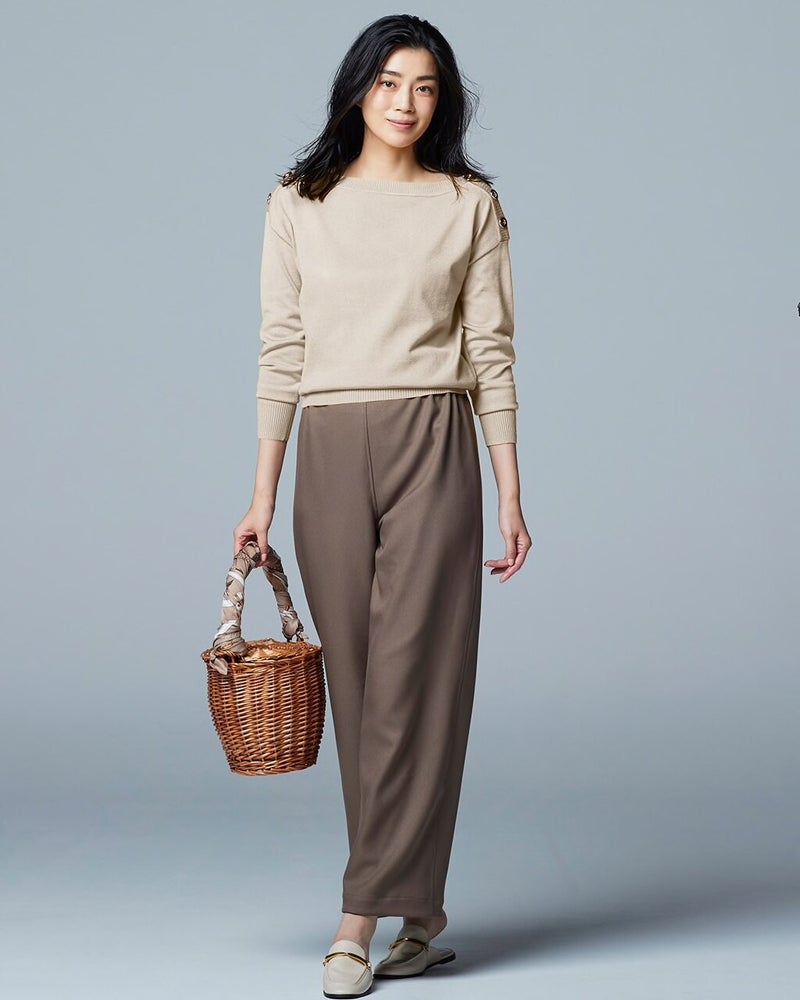 ミックスニット・ボタン使いボートネック