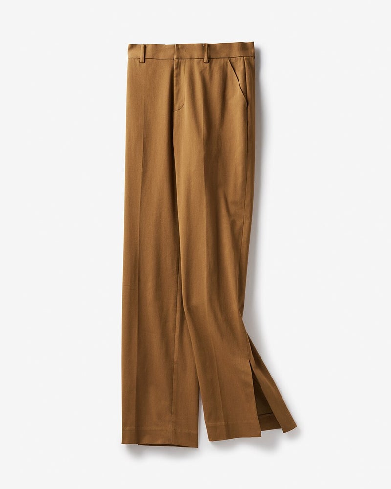 サイドに深めのスリットを入れた、スタイリッシュなパンツ。素材にはのびやかなチノクロスを採用し、柔らかい着心地に仕上げました。流れるような美しいストレートラインは、スリットの広がりによる脚長魅せ効果も。ウエストも後ろゴム仕様だから、窮屈感なく1日過ごせます。