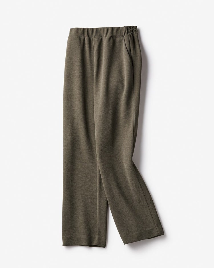 - ストレッチ性が高くサラリとした生地です。 休日をダラダラ過ごしたい時でも履けるパンツです。 かと言ってだらしなくも見えず、脚もスリムに見せてくれます。 気にいったので色違いを購入、実母にもおすすめしました。