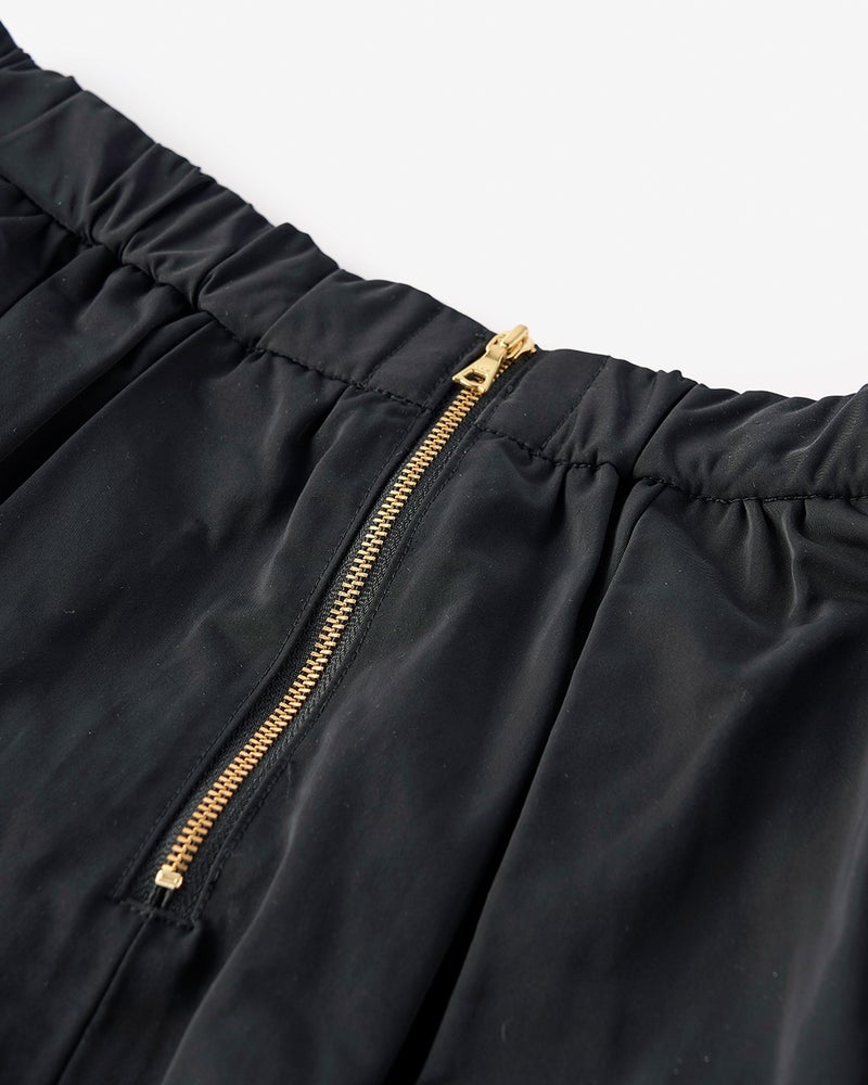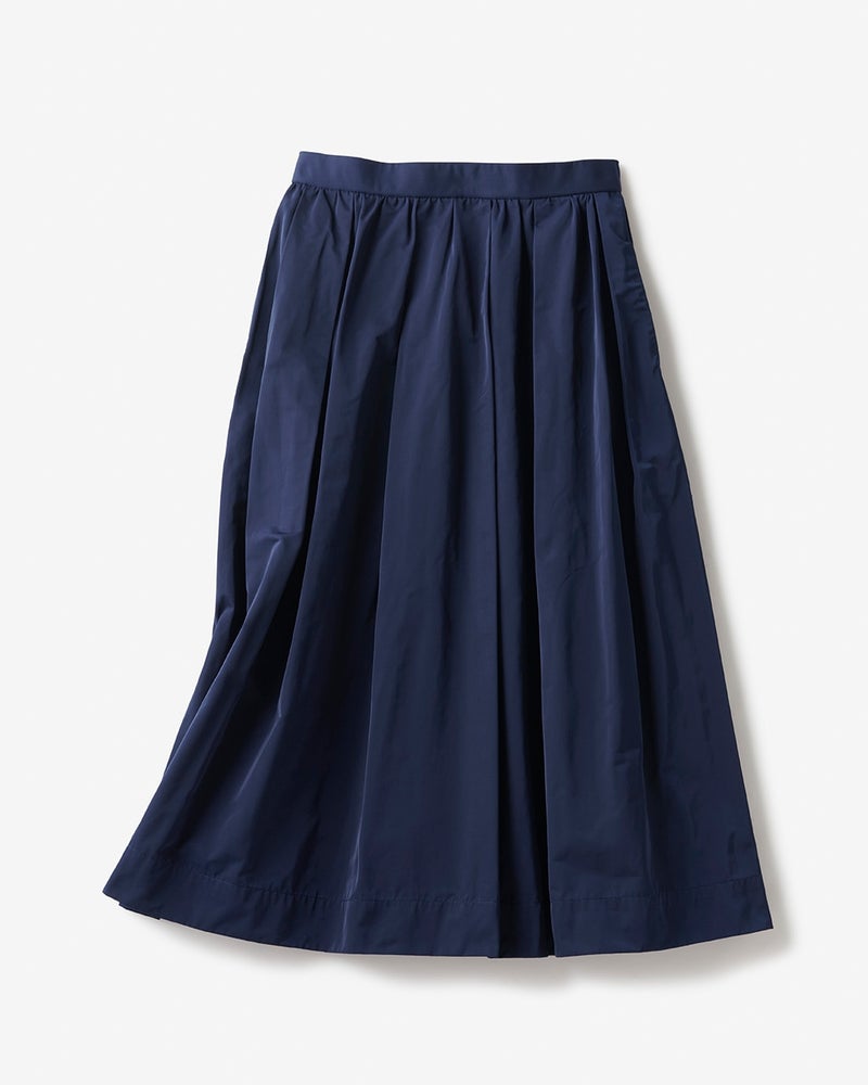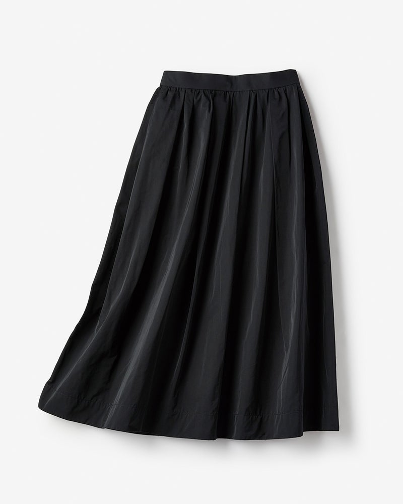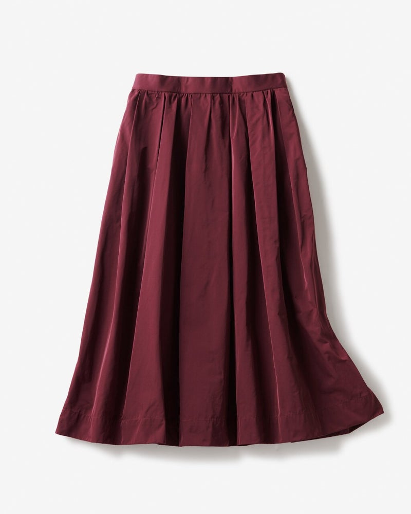 ほのかな光沢を持つタフタ素材のフレアスカート。