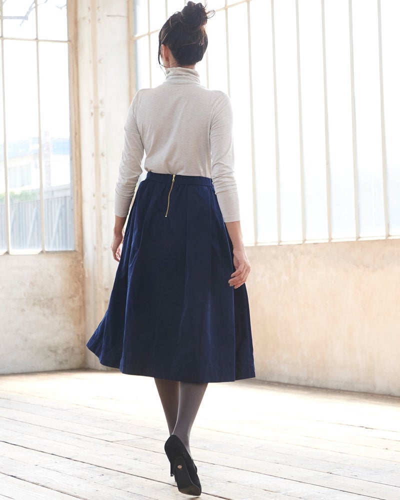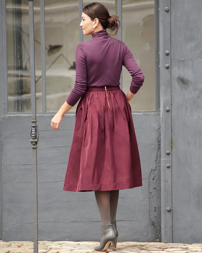 ほのかな光沢を持つタフタ素材のフレアスカート。いつものタートルに合わせるだけで上品かつ華やかなスタイルになれるから、年末年始のイベントにも活躍しそう。
