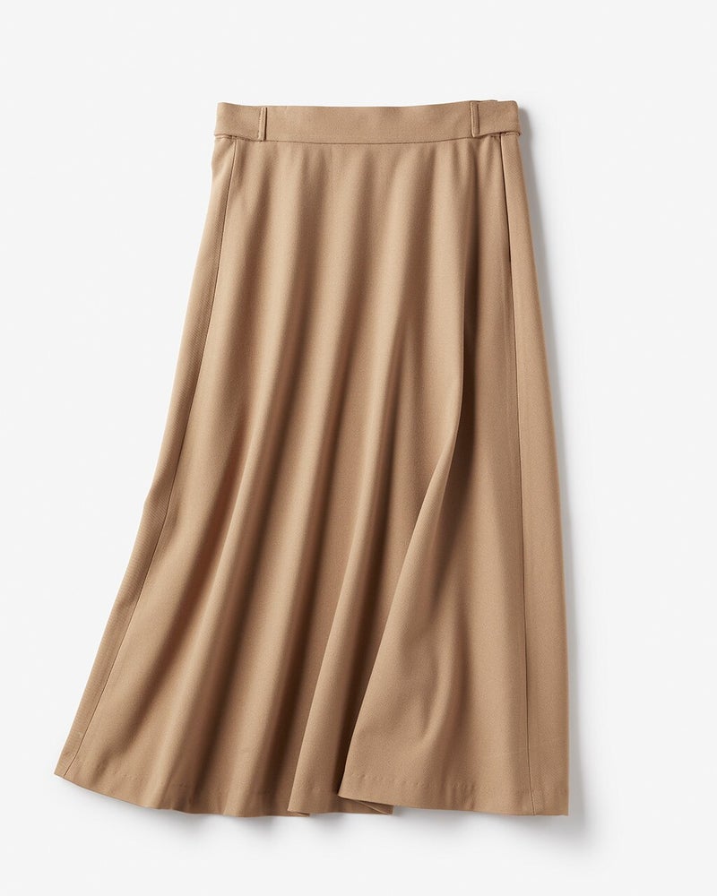 フレアがきれいです。またウエストのデザインも素敵です。薄地ですが、真冬でも履けます。長い季節、重宝しそうです。