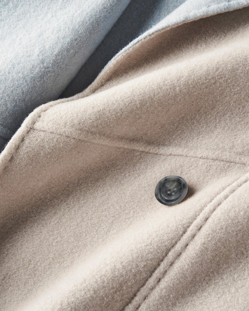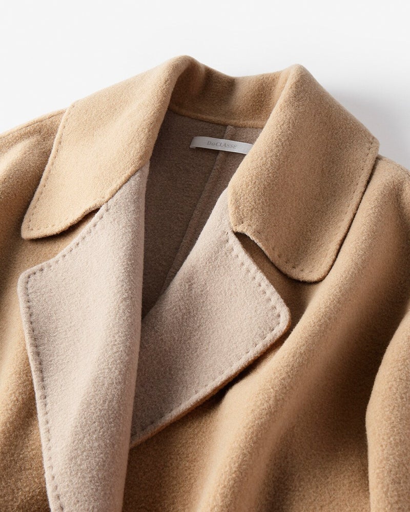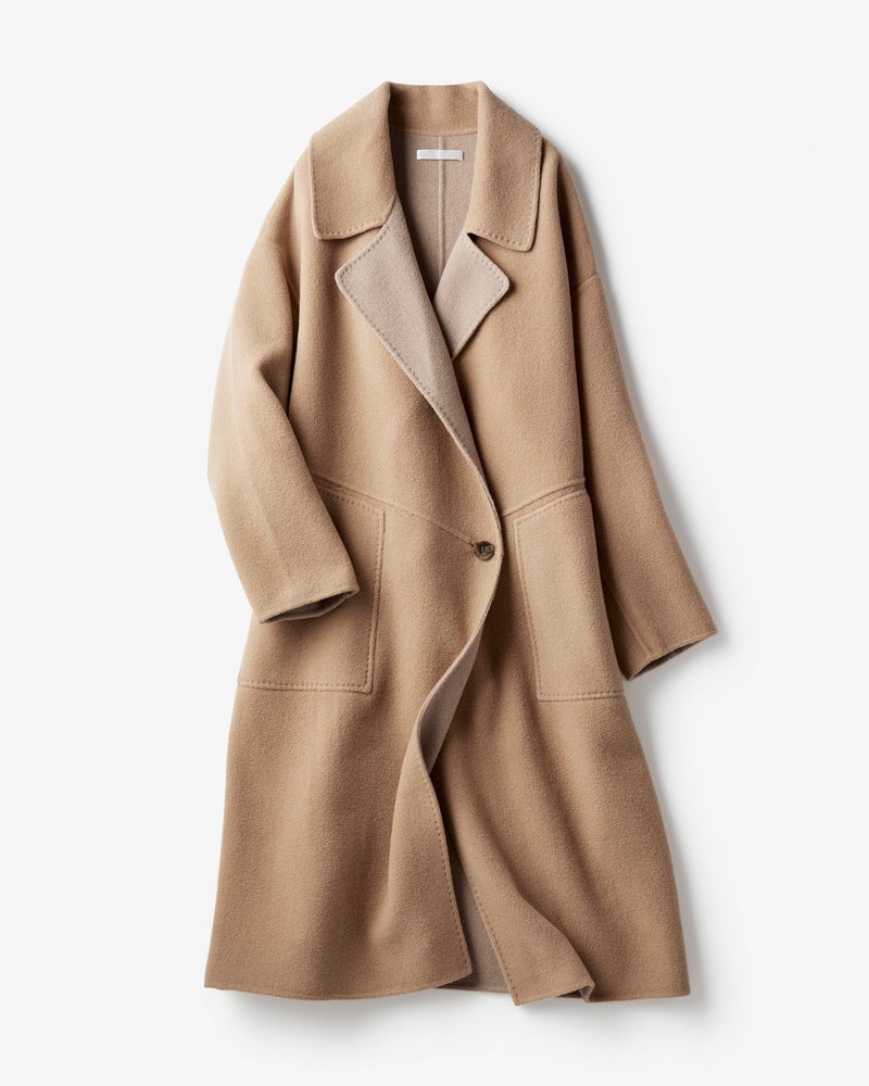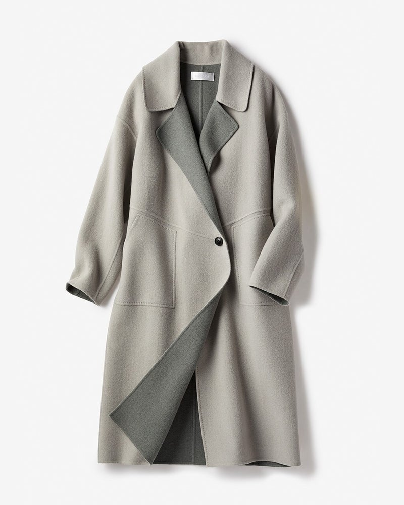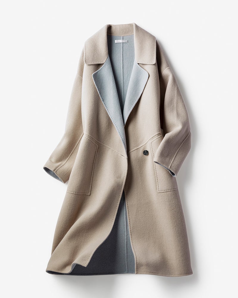 POINT1.熟練の手仕事が叶える最高級素材高級コートの代名詞ともいえる「ダブルフェイス」素材。しなやかな2枚のウールを重ね、手まつりでかがってから、縫い目を表に出さないように縫製していくこの製法は、熟練の職人でも数年間のトレーニングが必要だと言われる贅沢な仕立て。 -