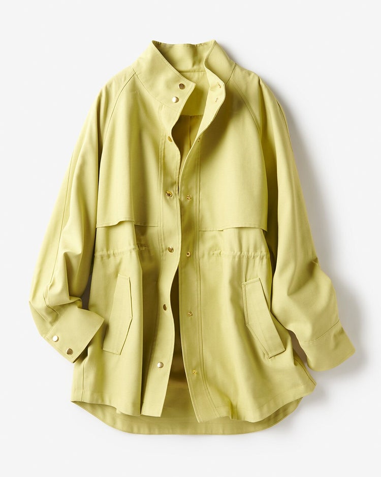 コートより軽やかに、ジャケットよりも女らしく。織り目まで美しいカルゼスタンドカラー