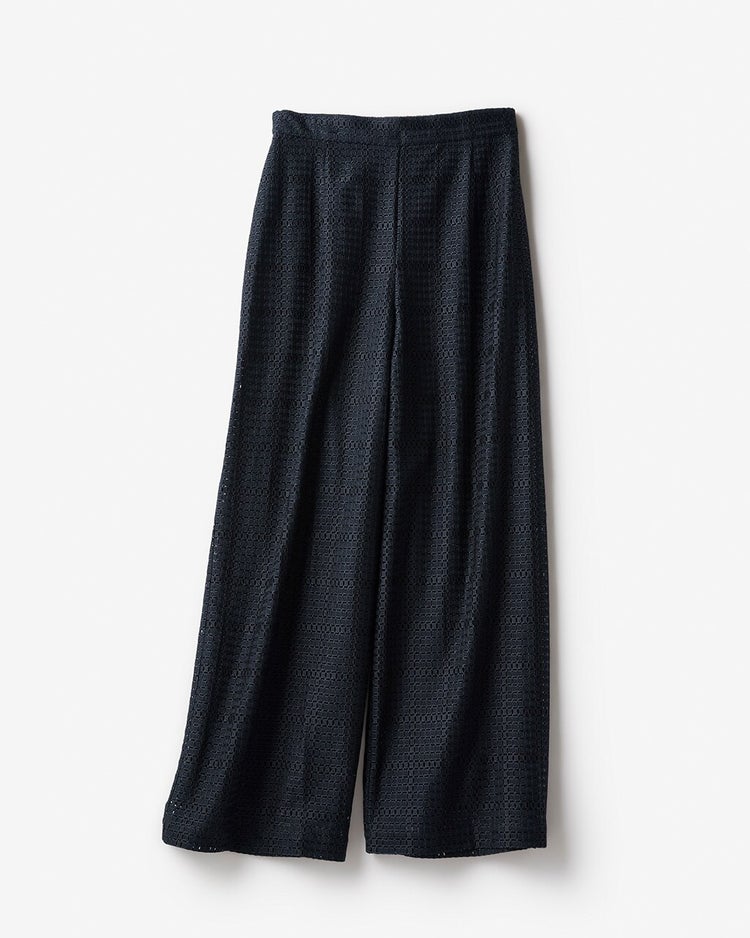 辛口総レースで仕立てたフェミニン派ワイドパンツ
