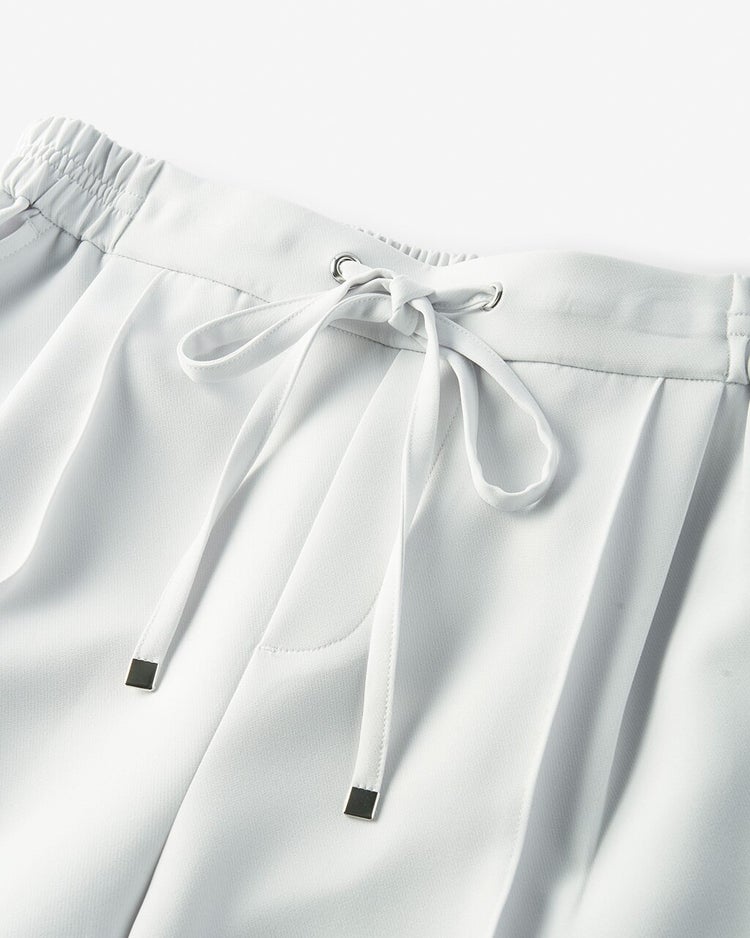 ウエスト総ゴムで気楽に着こなせるイージーパンツ。カジュアルだけど上品な着こなしにぴったり。