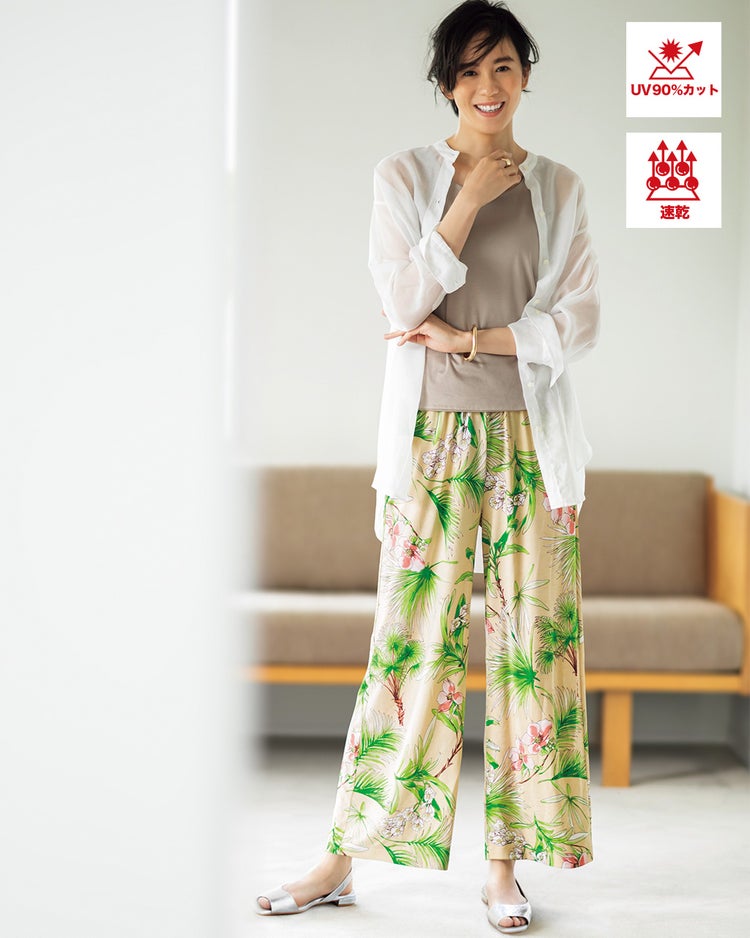 POINT3.豊富な柄バリエーション今年はトレンドのボタニカルやリーフ柄を多く採用し、柄初心者さんでも選びやすいモノトーン配色も用意いたしました。新しい柄との出会いが夏のおしゃれを開放してくれます。
