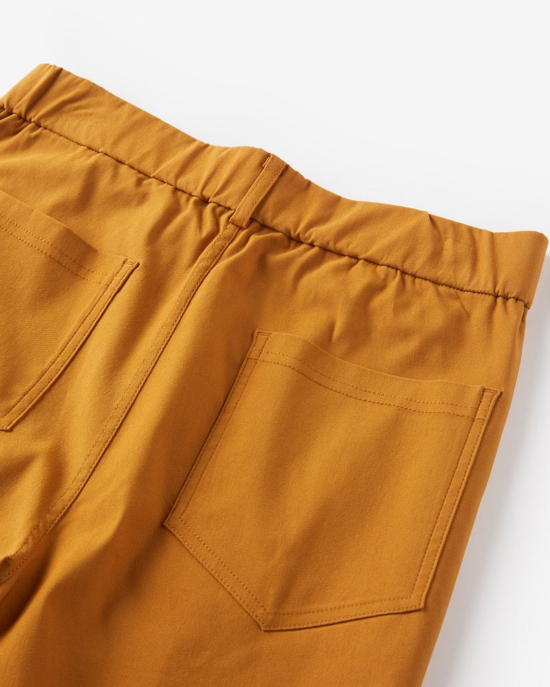 - ぽっちゃり体型の短足なのでいつもジーンズを履いてましたが、還暦過ぎて気持ちの変化があり、明るい色に挑戦しようと購入。なかなか良い感じです。