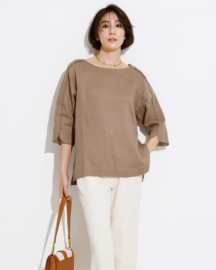 • 21番リネン・ラインレースブラウス 詳細画像 ライトブラウン 1