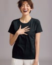 (アクア:モデルさんの着画より、平置きしたTシャツの写真のほうが、実物に近い色です)