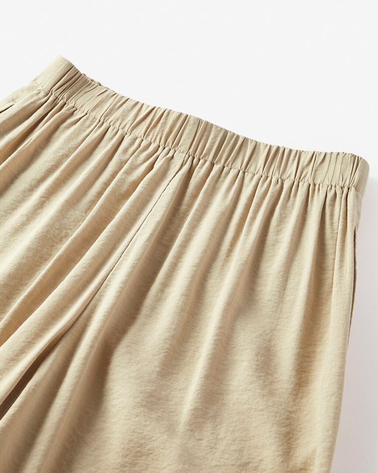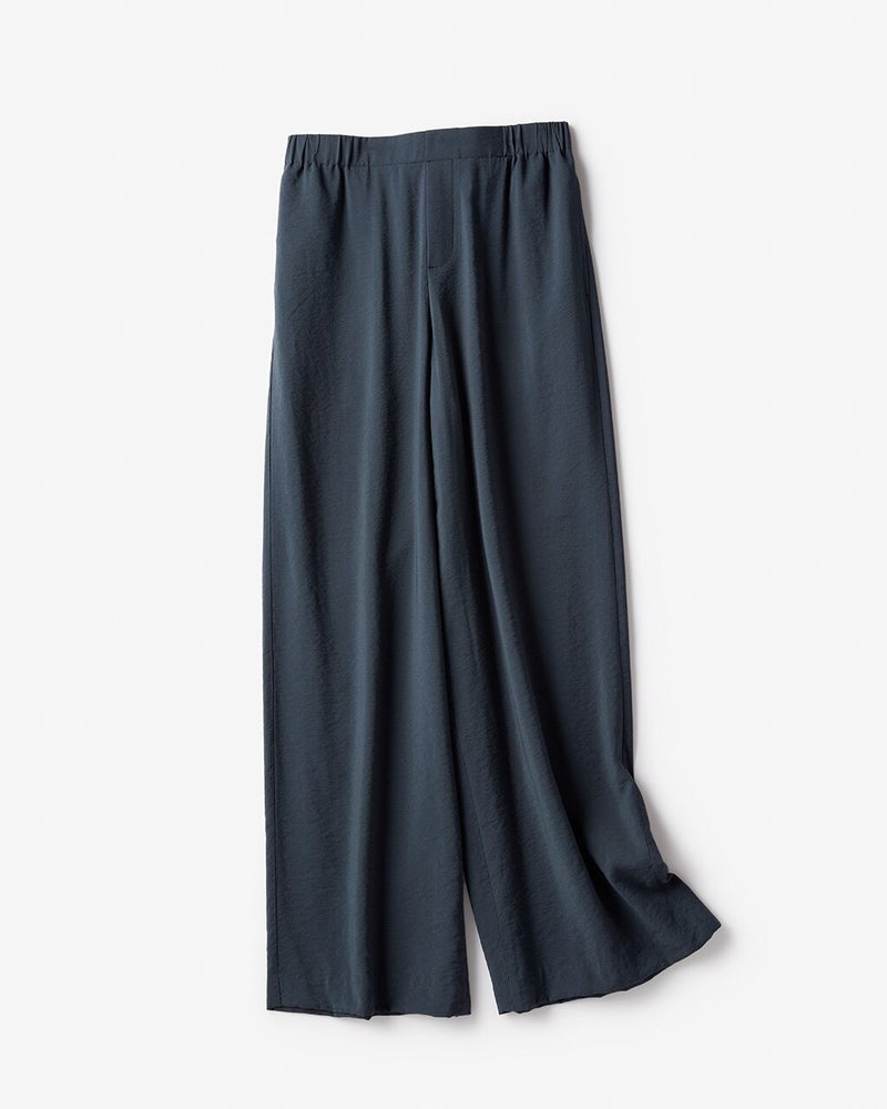 楽してラグジュアリーを叶えてくれる、ワッシャーサテン風のリラックスパンツ。ウエスト総ゴムでさっとはくだけ、ほのかな光沢感が装いを優雅にしてくれます。