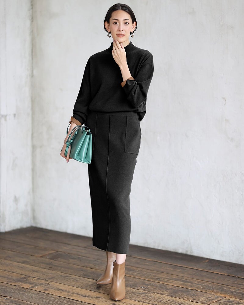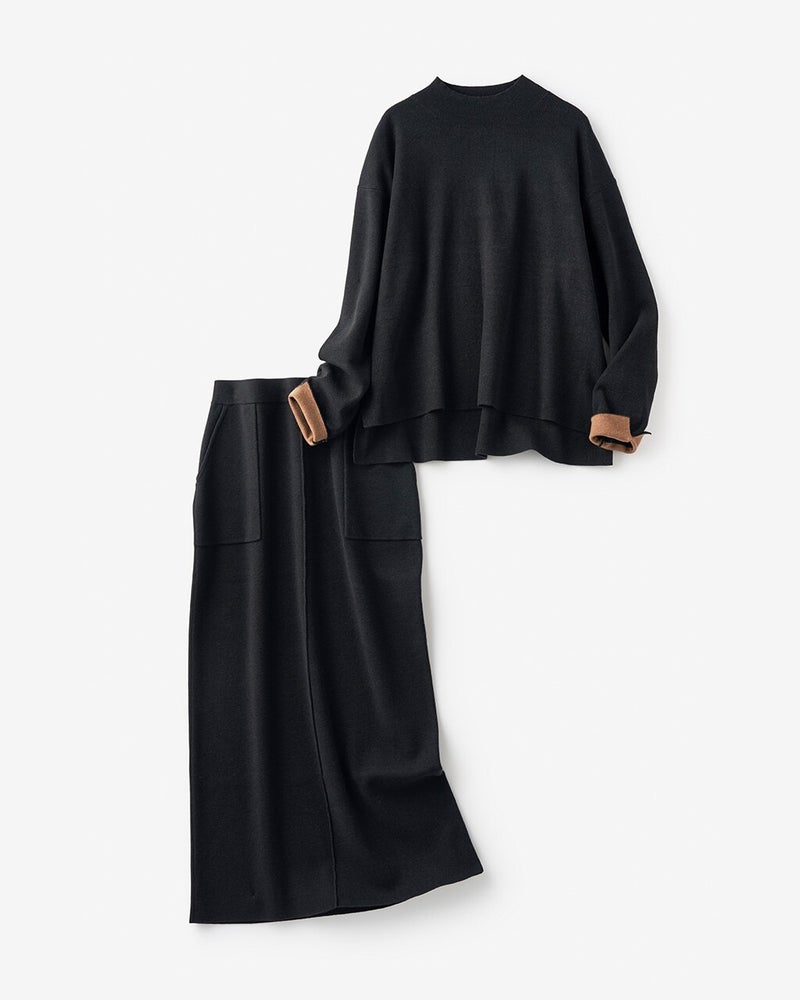• 総針ハイネック・スカートセットアップ 詳細画像 ブラック 1