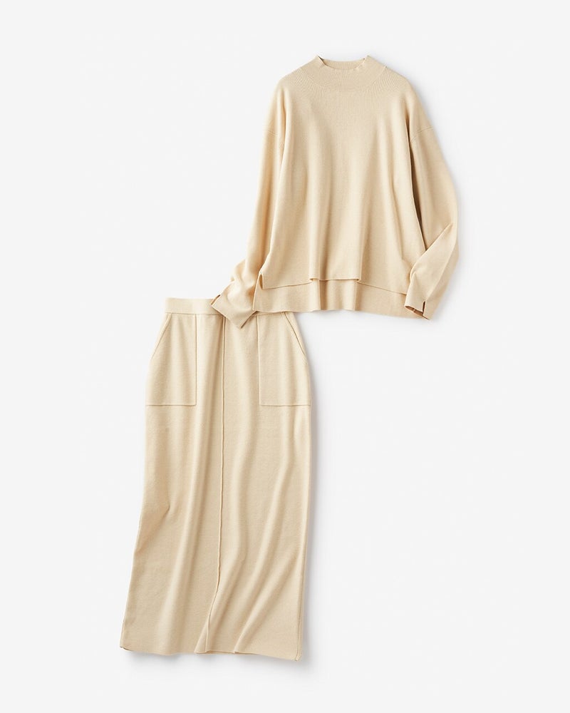 • 総針ハイネック・スカートセットアップ 詳細画像 アイボリー 1