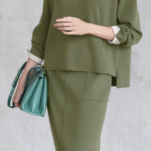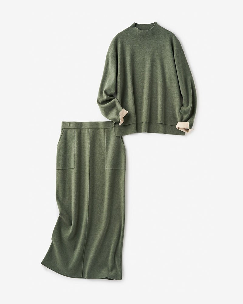 • 総針ハイネック・スカートセットアップ 詳細画像 カーキ 1