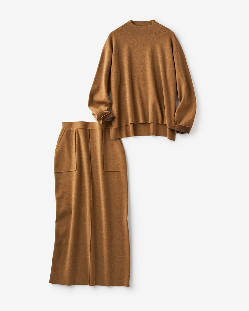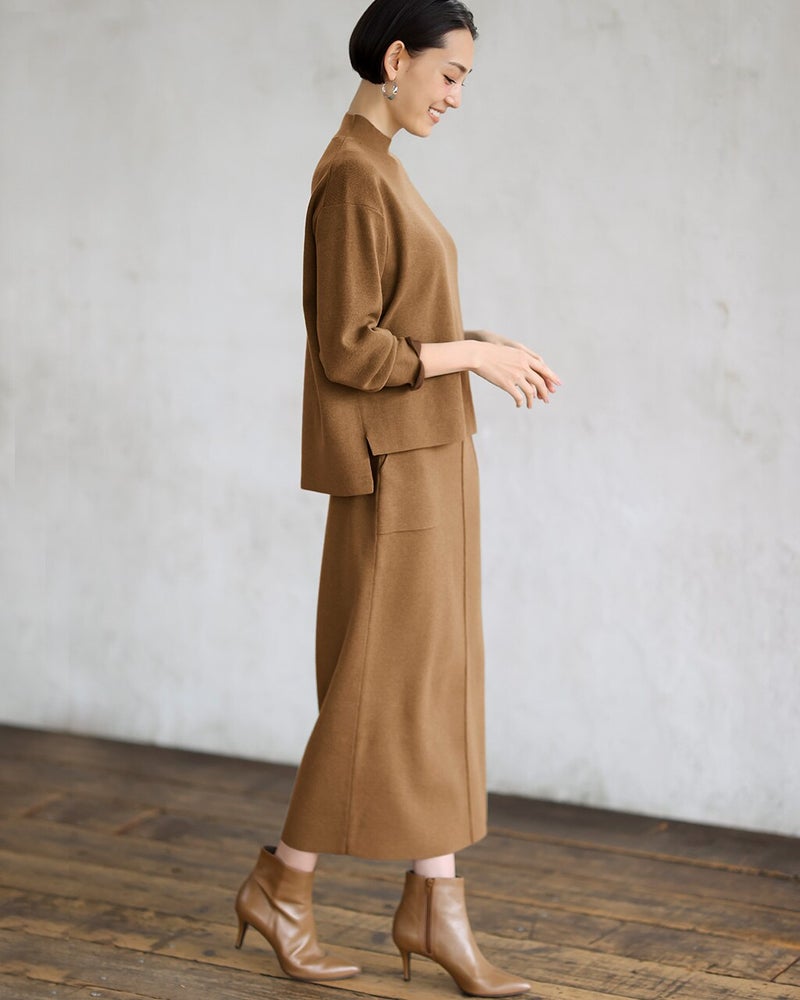 • 総針ハイネック・スカートセットアップ 詳細画像 キャメル 1