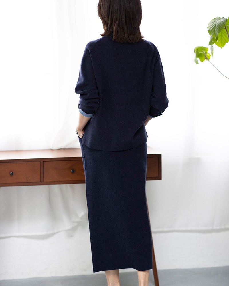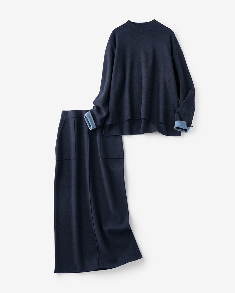 • 総針ハイネック・スカートセットアップ 詳細画像 ミッドナイトブルー 1