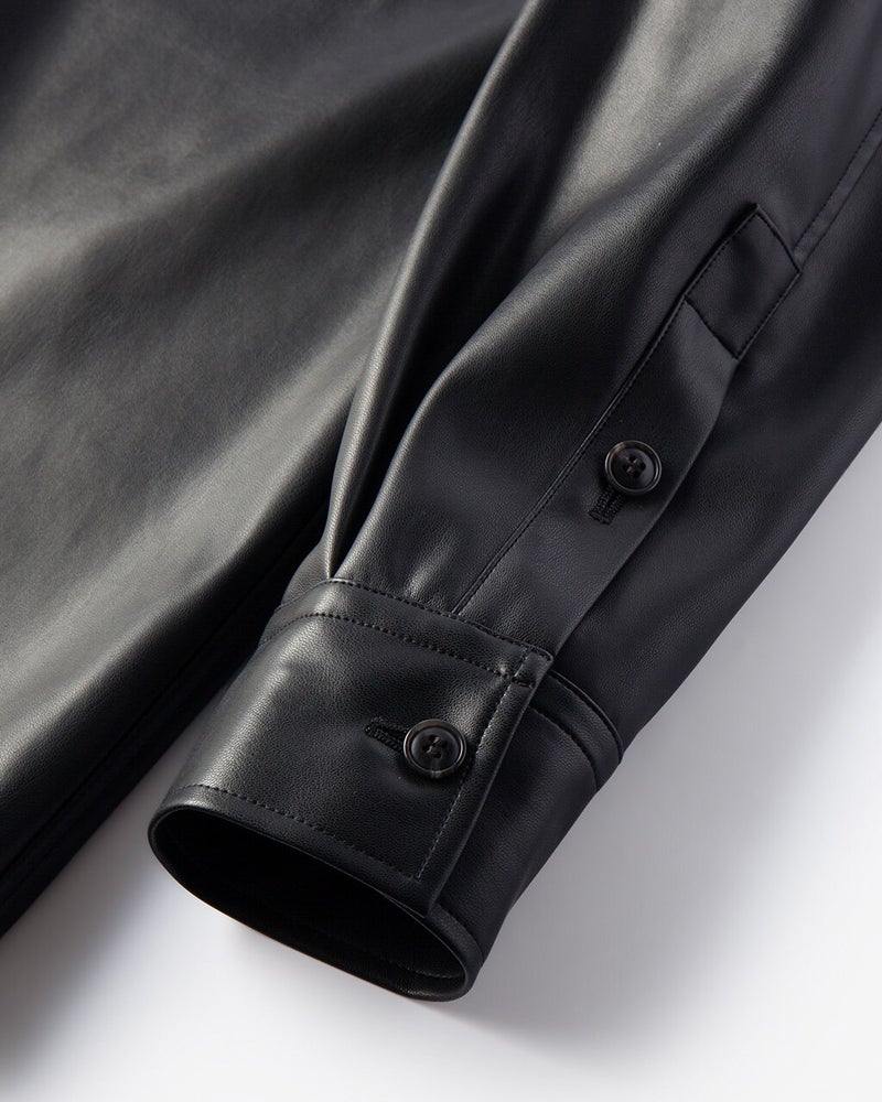 しなやかで薄手のエコレザー素材は、大人ならではのカジュアルスタイルに。ゆったり仕立てたオーバーサイズシルエットは、ほんの少し衿を抜いてざっくり着こなすのが今の気分。