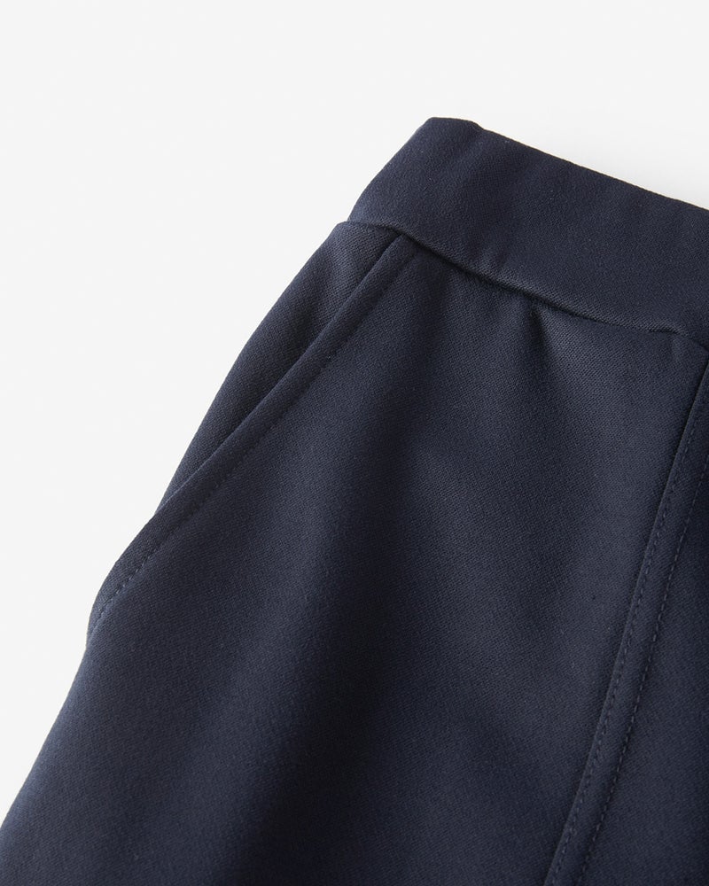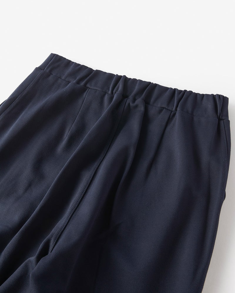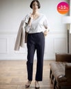 ストレッチがきいていて動きやすく、ウエストはスッキリ。裾幅の狭いストレートデザインでオン&オフのどちらでも活躍できます。