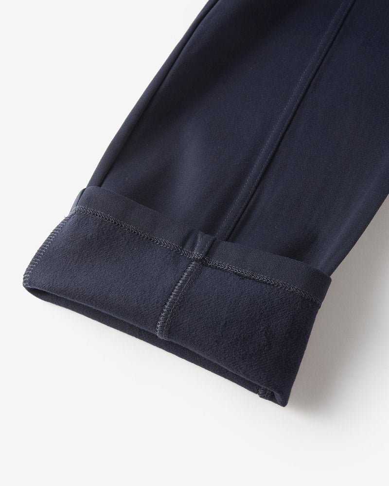 POINT1.体感プラス3℃のぬくもり綾目の浮いた上品な生地は、実は汗や水分に反応して熱を発する吸湿発熱素材。ほのかな裏起毛仕立てだから、はく瞬間の「ひやっと感」もありません。