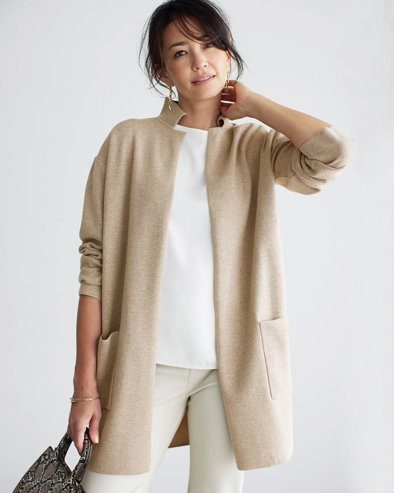- 思ったよりも軽かったです。(軽いの大事) 身長が低いのでいつも丈が難しいのですが、こちらは好みの丈でしかもスッキリ見えました。 襟も柔らかく立てても折っても素敵です。 すごく気に入ったのでネイビーに続きトープも頼みました。 返品も交換もしやすいので、そこも通販で頼む時のポイントが高かったです。