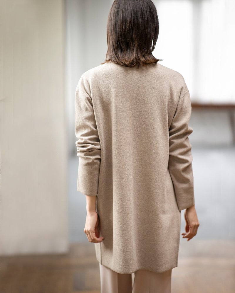 POINT3.長め丈で体型カバーもヒップラインが隠れる長め丈なので、体型カバー力も◎軽いのにすとんと落ちるデザインなのですっきり見えします。