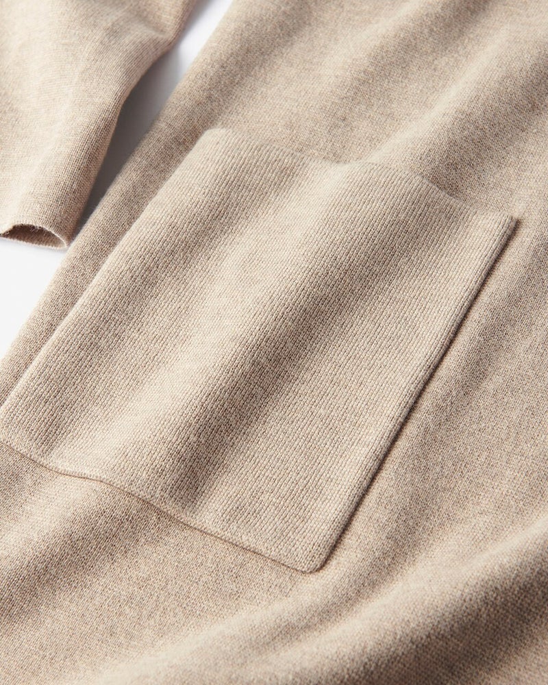 - サイズ感、色味も良く、生地の厚みもあり気に入りました。ただ、襟が内側にどうしても丸まってしまい、注意していないと「襟が中に入っているのに気が付かない人」になってしまいます。また、擦れる部分は若干の毛玉ができやすいので注意して着ています。