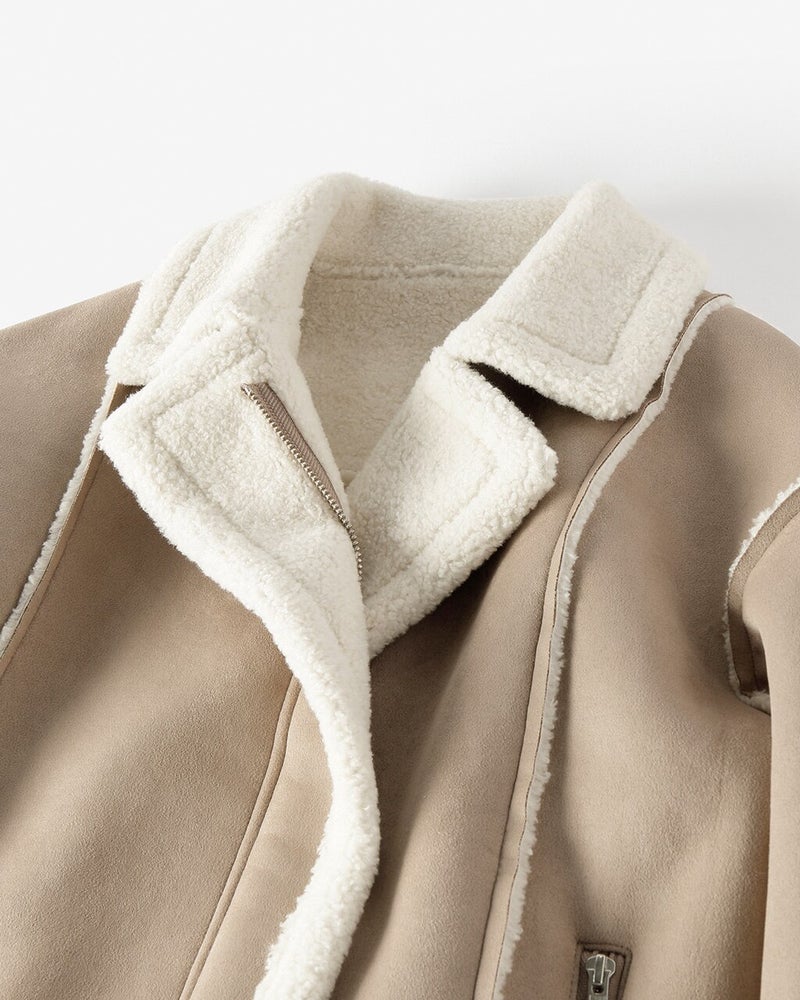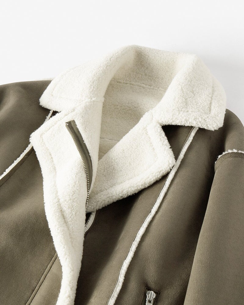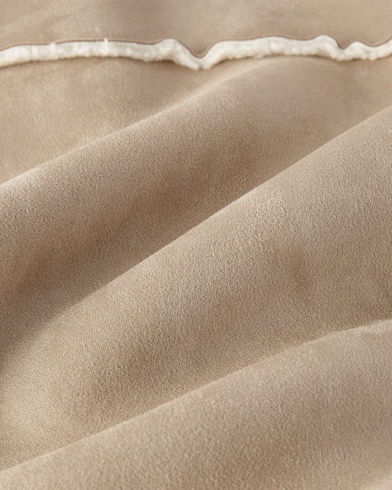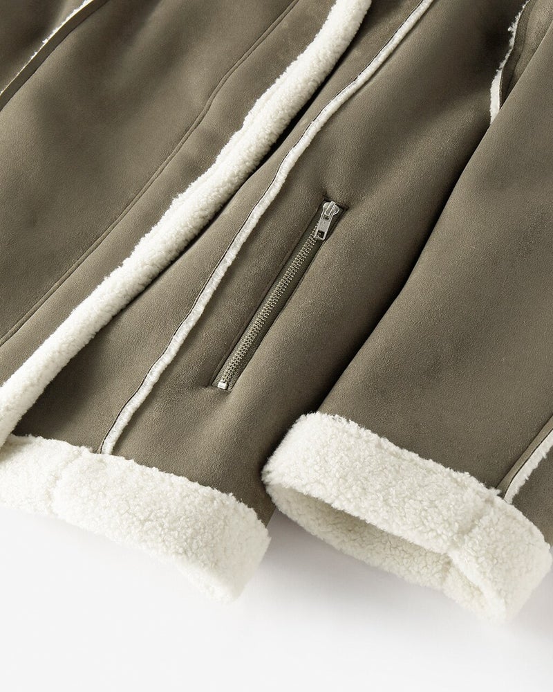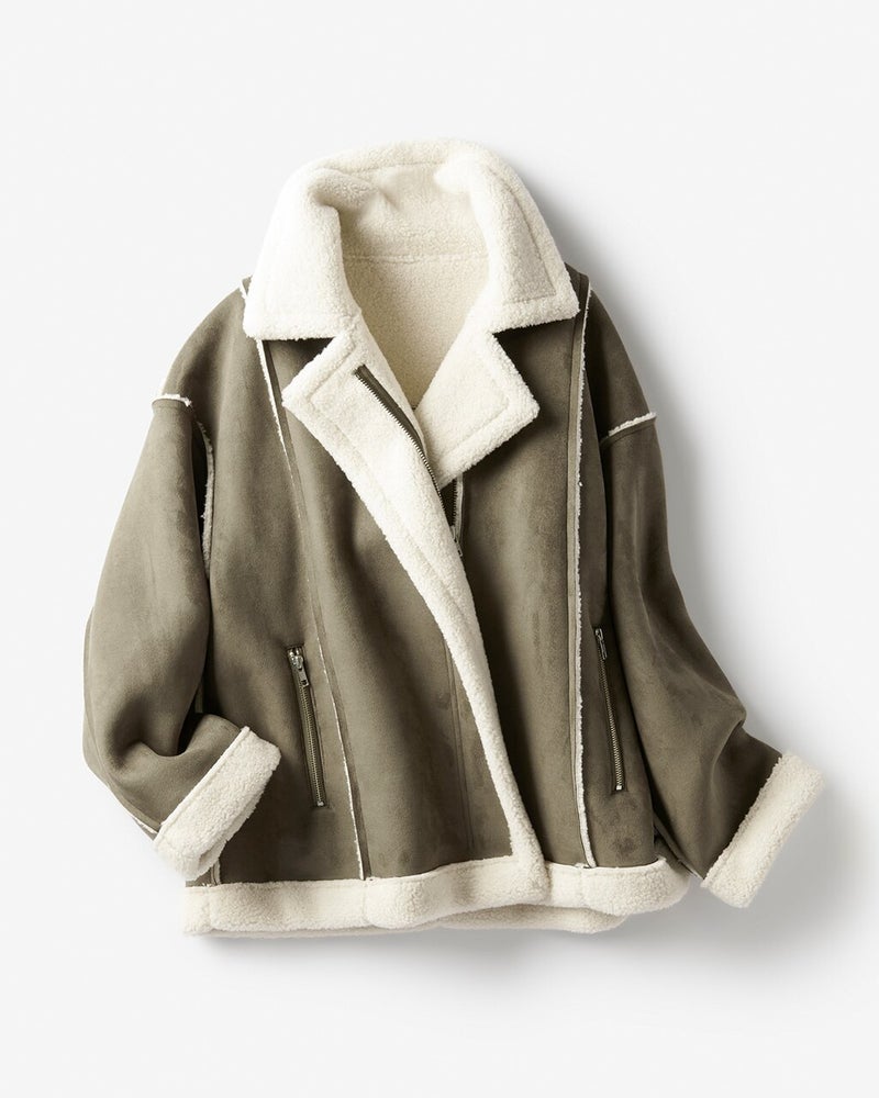 辛口デザインのライダースも、ムートン素材ならやさしい印象に。厚みのある生地感ながら、縦のラインを効かせることで、細見えするデザインに。スエード×ボアのコントラストも、羽織るだけで着こなしにメリハリをプラスします。