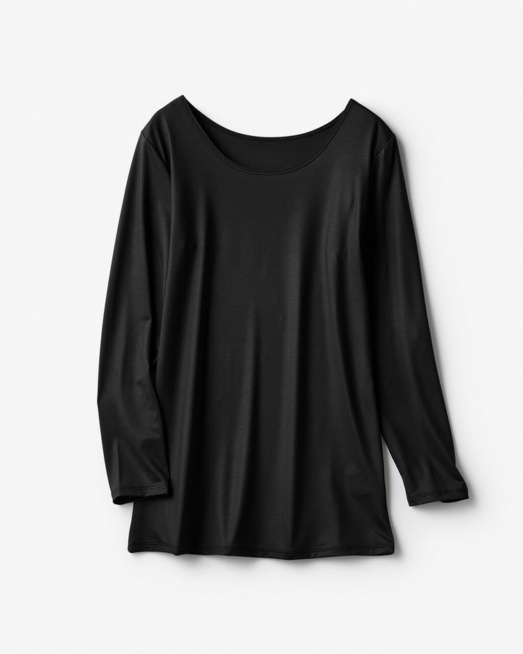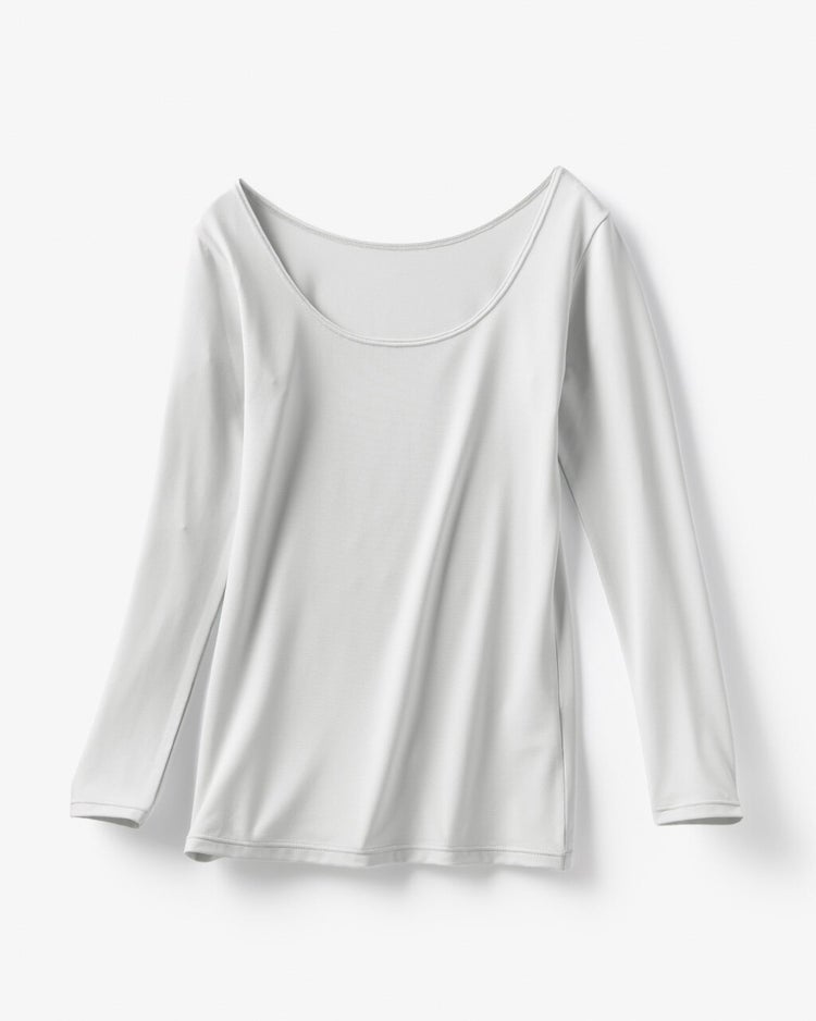 100デニールのナノミックス®糸に、ポリエステル糸とポリウレタン糸を編み混ぜた、ベア天竺素材を使用。肌の上をすべるようになめらかでストレッチ性に優れたインナーシリーズです。