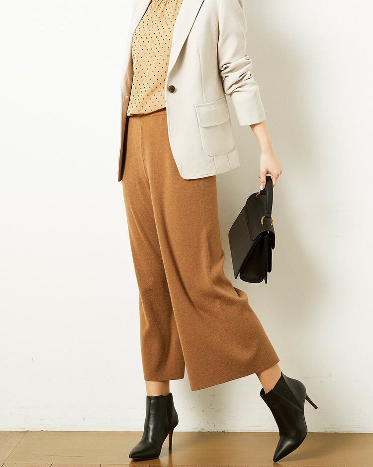 • 総針編み・セミワイドパンツ 詳細画像 キャメル 1