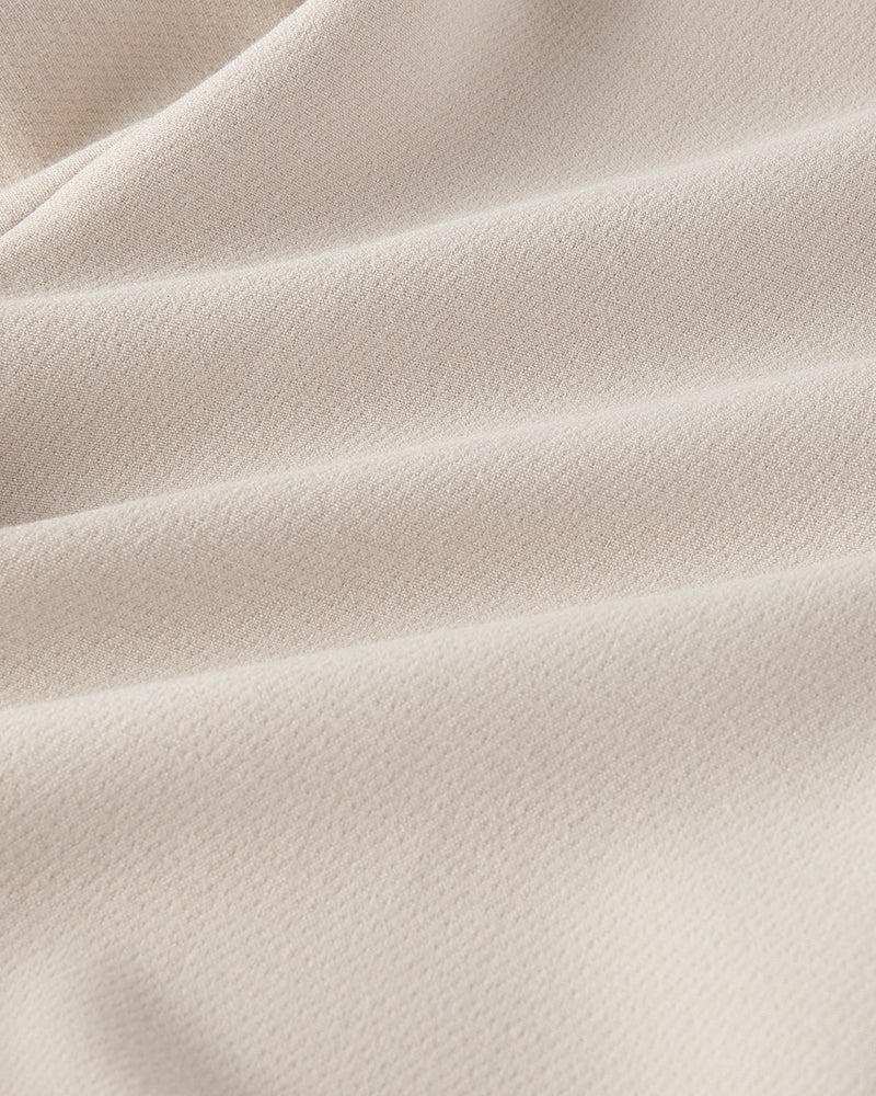 カルゼダブルクロス素材経糸横糸を綾で織り上げた二重織りカルゼ素材。カチっと硬い印象の綾織りではなく、二重織りならではのふっくらした柔らかさとなめらかさが特長。ナチュラルストレッチで長時間着ていても疲れない着心地もポイントです。