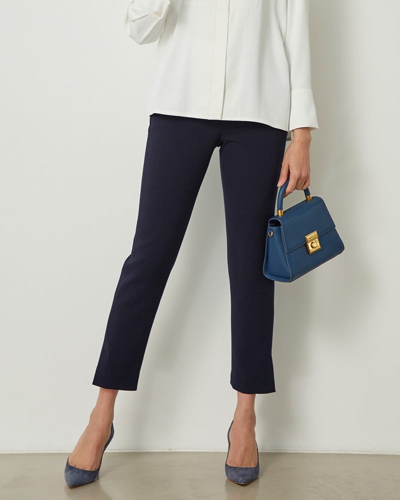 あらゆるシーンで活躍する美脚テーパード着こなしを上品に仕上げてくれる美シルエットのスリムテーパードデザイン。余分な装飾を省いたミニマムなデザインは、ニットやジャケットなどトップスを選ばず着回し自在です。