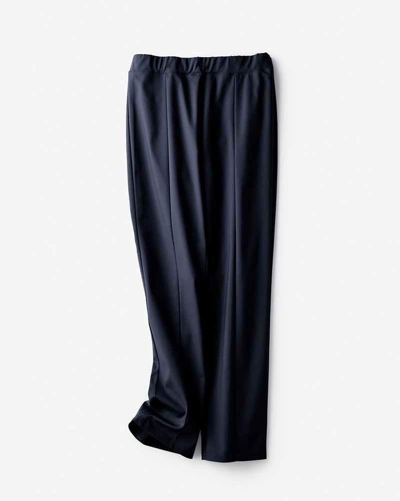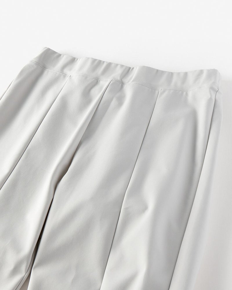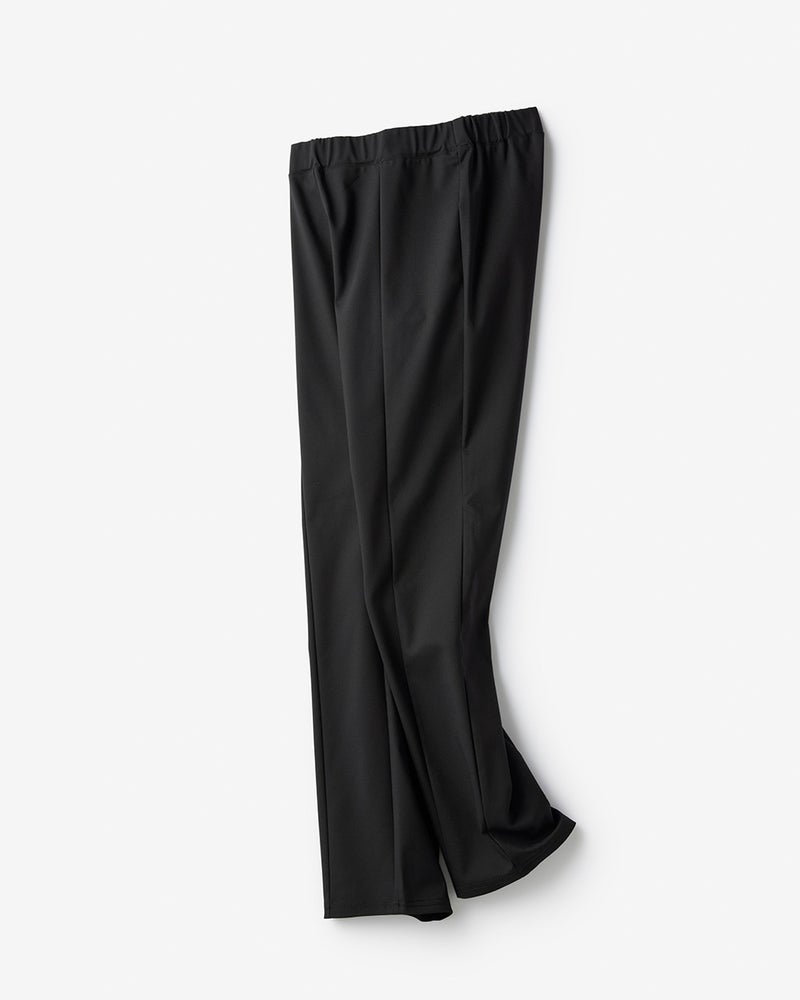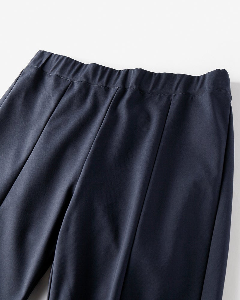 ほっそり見せのスティックパンツ前後センターに切り替えタックを入れて脚をまっすぐ、そして足首見せの裾すぼまりデザインでぐっと細見せに。らくらく着こなせるウエスト総ゴム仕様も嬉しいポイント。