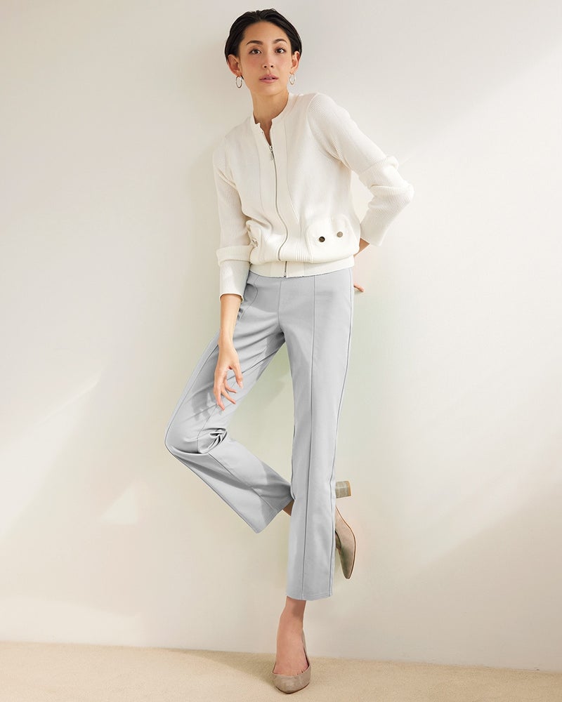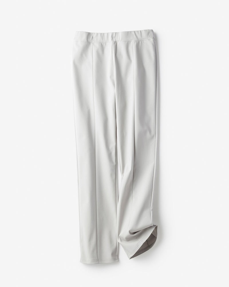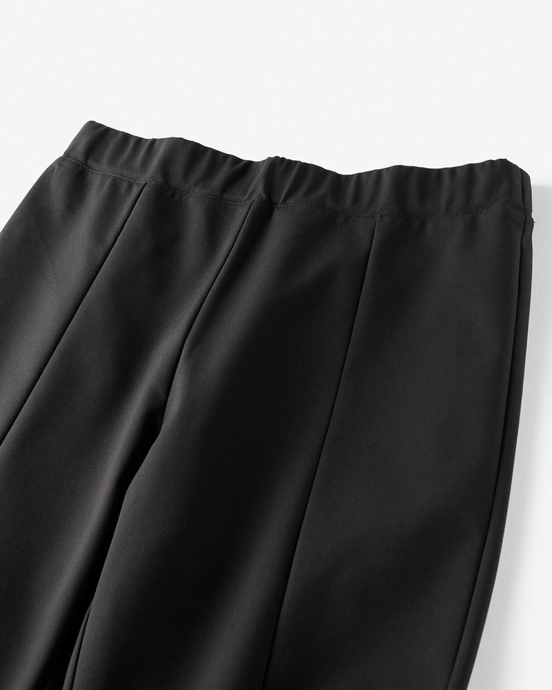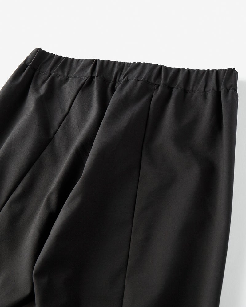 ほっそり見せのスティックパンツ前後センターに切り替えタックを入れて脚をまっすぐ、そして足首見せの裾すぼまりデザインでぐっと細見せに。らくらく着こなせるウエスト総ゴム仕様も嬉しいポイント。