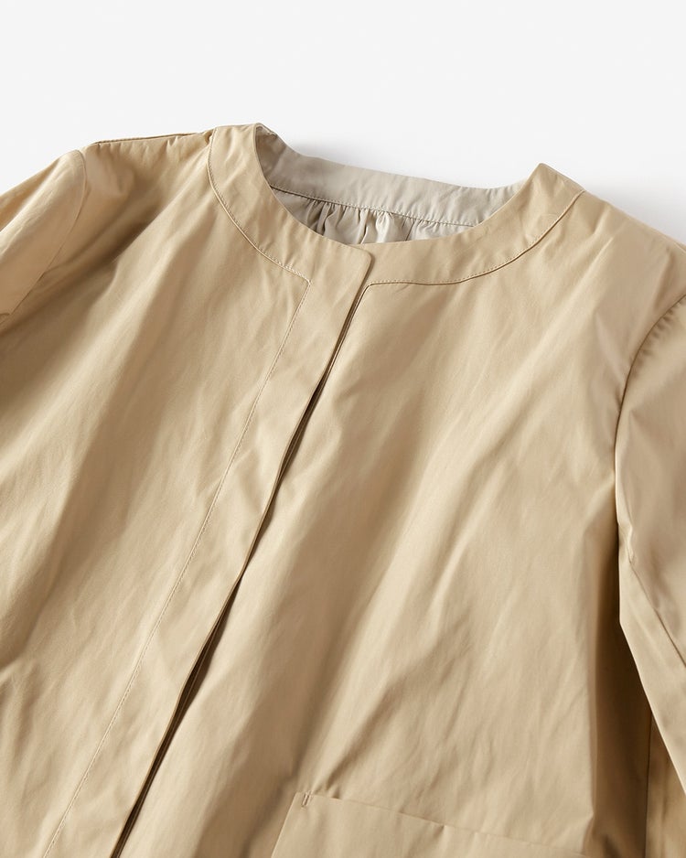 - ベージュの9号を購入。フードのないキレイ目なアウターを探していたので期待通りでした。スカートを履くことが多いので丈が短めなのも良かったです。追加で同じサイズのカーキも購入。こちら実物は素敵な色で期待以上でした。