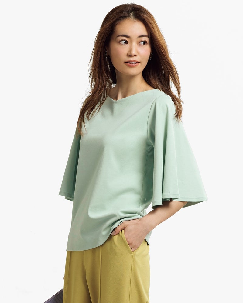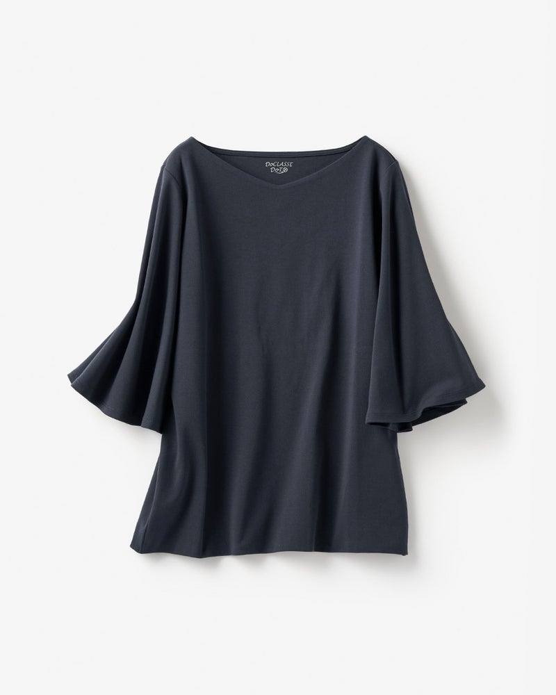 - 紺色を購入しました。 ボートネックで、首周りもきれいに見えるし、フレアスリーブで腕も華奢に見えます。 買って良かったです。