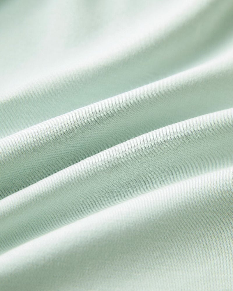 - 肉厚でしっかりした生地なので、一枚で着てもカジュアルになり過ぎず、オフィスOK。ただしフロント二枚仕立ては品格があるぶんちょっと暑いですね。なるほど涼しいライトオンスの新商品が出たのはそういうわけか、と思いました。 デザインは◎ベルスリーブも素敵なのですが、絶妙な浅いVネックが美しい!水色の色味はブルーベースに似合うクールブルーでした。