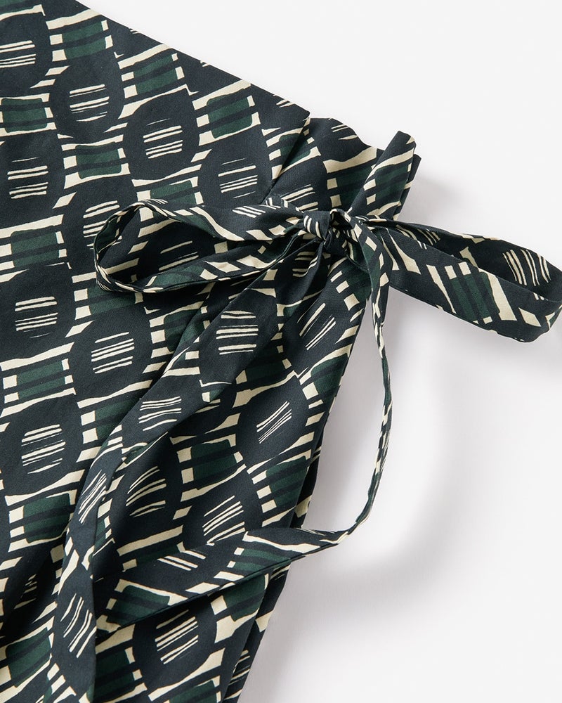 夏にこそ取り入れたいプリントのお洒落をキレイに魅せる柄にこだわったのが、この幾何柄ストライプです。すっきり縦線を強調したモダン柄でほっそり見え。
