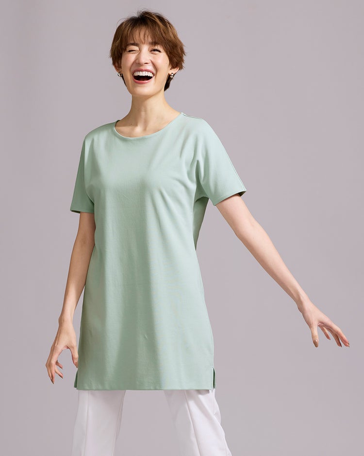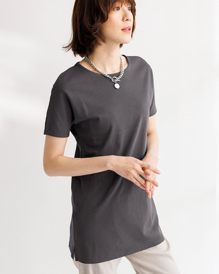 立体クルーネック長め丈/半袖・ドゥクラッセTシャツ