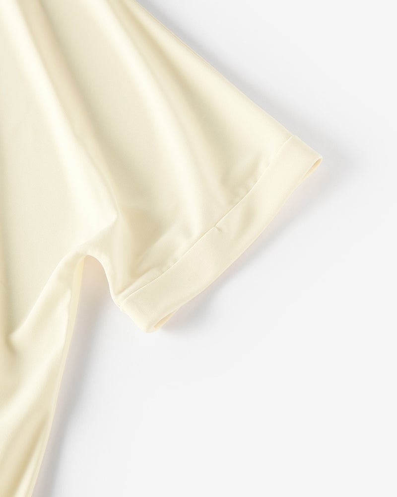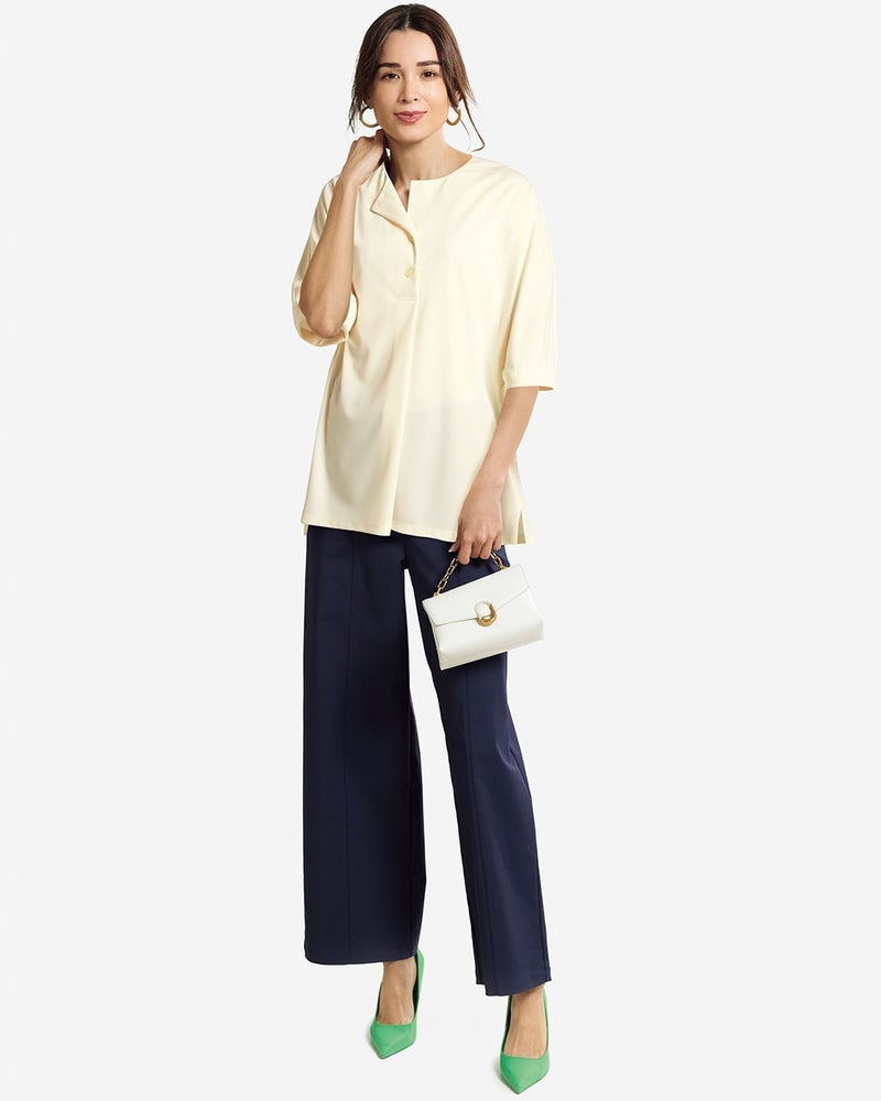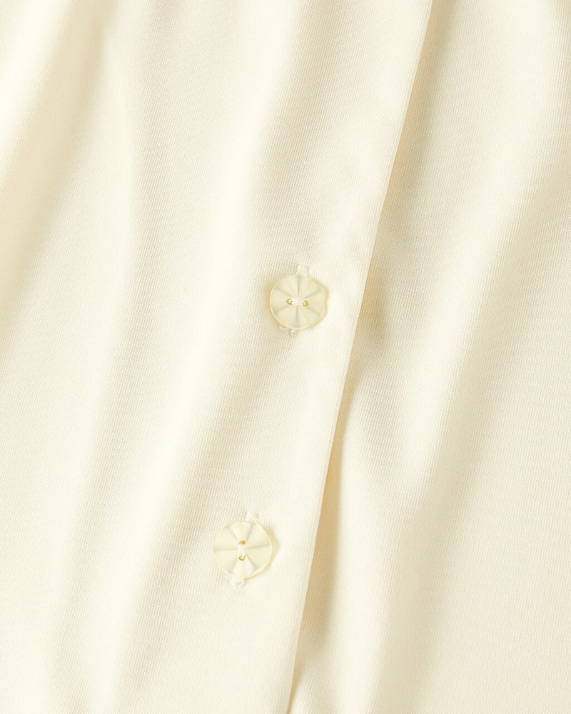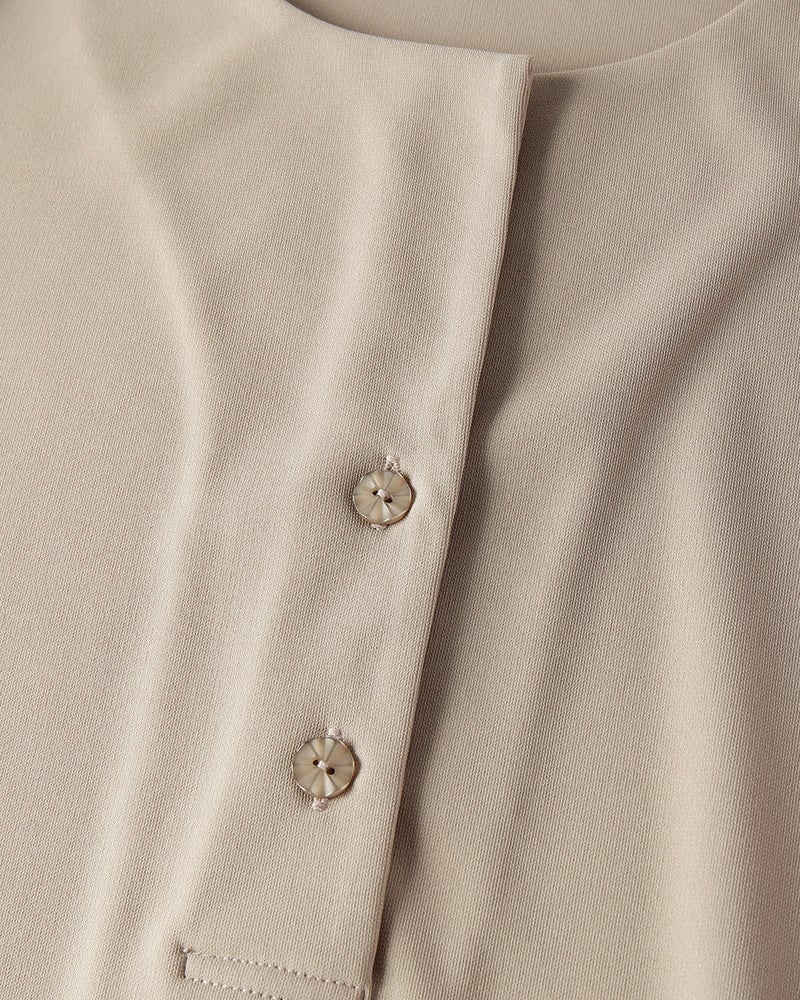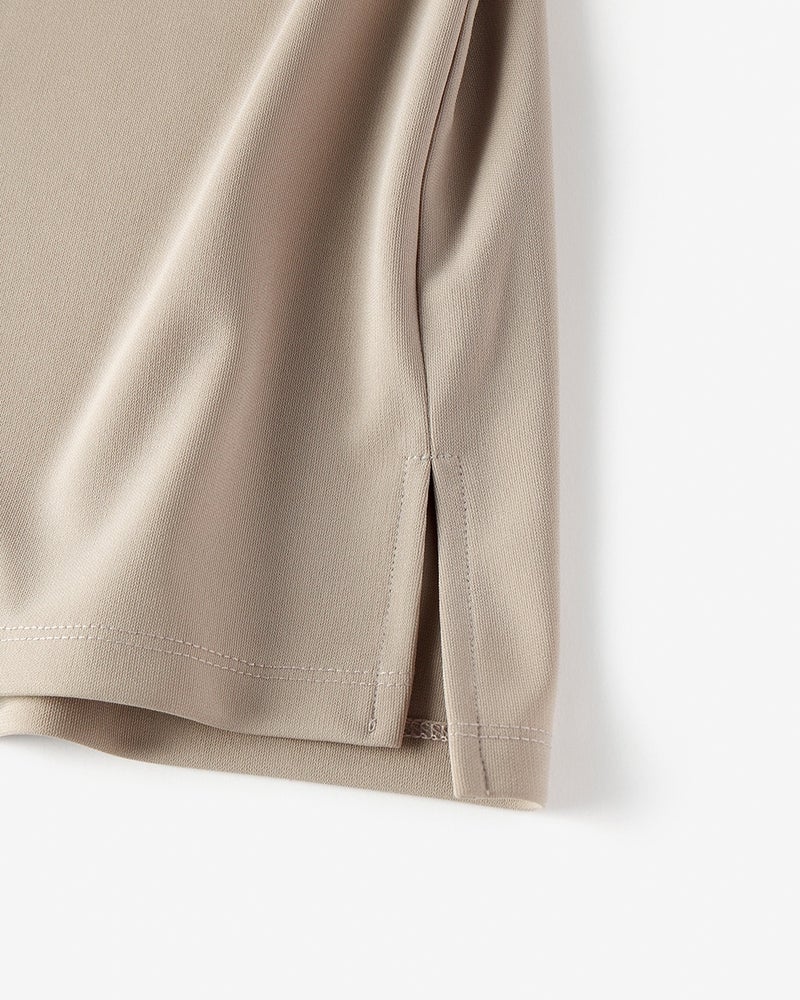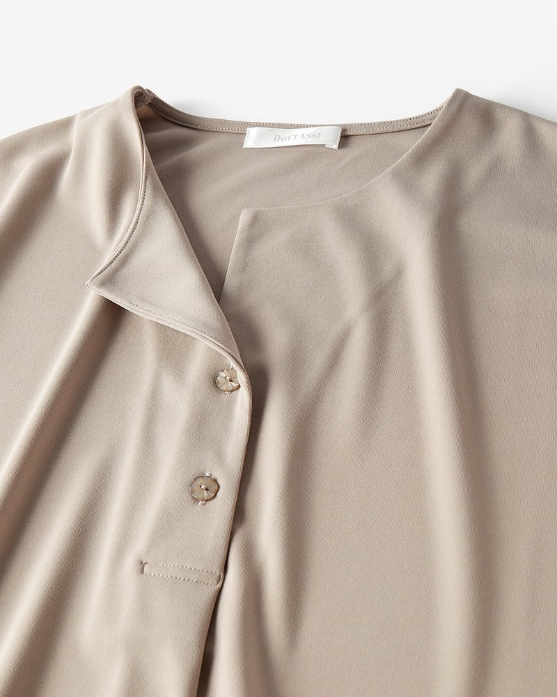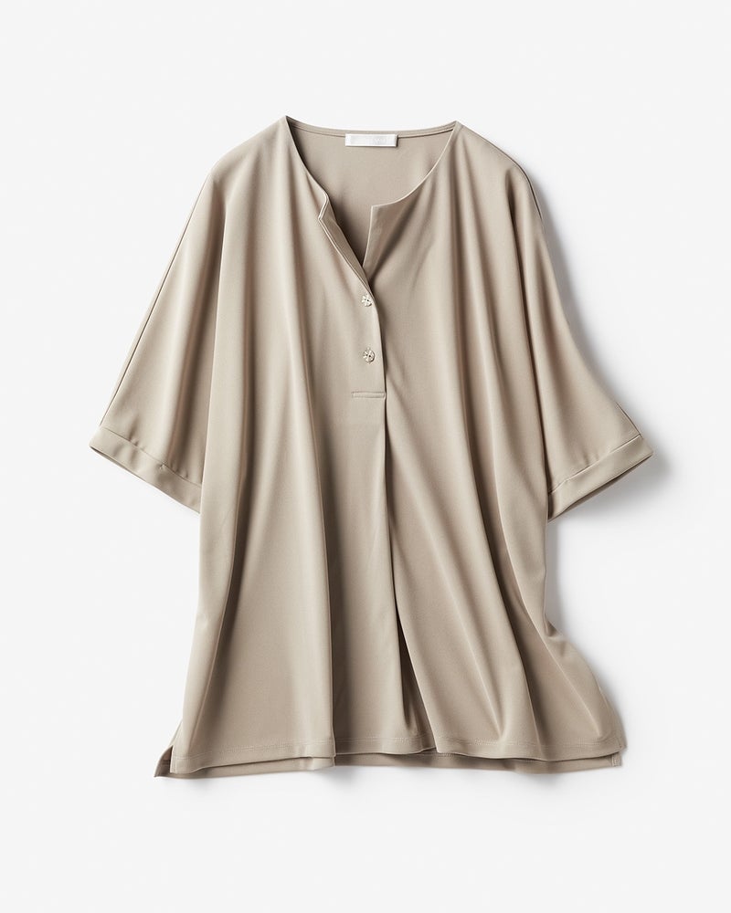 POINT1.身幅ゆったりの華奢見えトップス ほんのり鎖骨魅せデザインで上品な美しさを演出したブラウスは、タック使いでメリハリのあるデザインに仕立てました。 POINT2.ストレッチでストレスフリー エレガントなブラウス見え、でも着てみるとカットソー生地ならではの柔らかさとストレッチ性。自宅で洗えてお手入れが楽なのも嬉しいポイントです◎ POINT3.同素材のセットアップで、楽に着映えが叶う ワンピのように組み合わせを考えずに即コーディネートを完成できるのがセットアップのいいところ。同じ素材で自由に着まわしができる、ボトムスも揃えました。 同素材のスカートはこちら>>>> 同素材のパンツはこちら>>>>