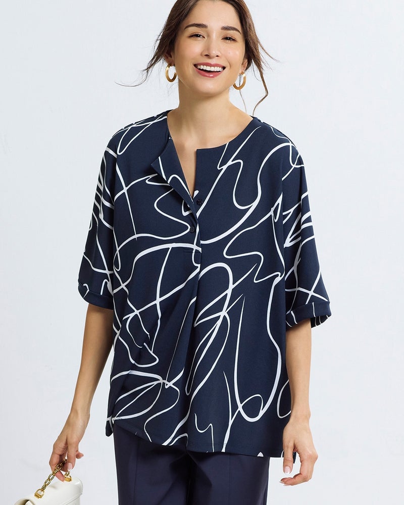 通常のサイズを購入したが、大きすぎた。 また、袖がドルマンスリーブのような感じの五分丈くらいで、バランスが悪い。 購入したものより小さいサイズならもう少し身体にフィットしたのかもしれないが、身体が大きく見える。返品交換したいが、着用してしまったので諦めてます。 パンツとセットで購入し、エレガントに着たかったのに、残念です。