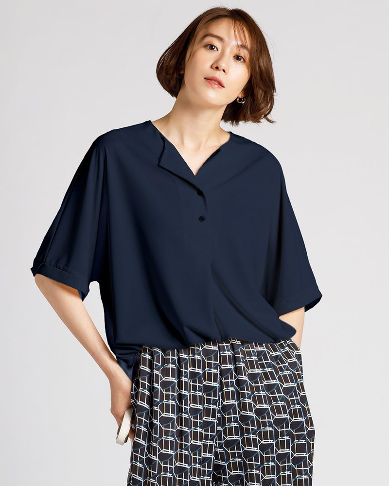 • 強撚スムース・フロントタックトップス 詳細画像 ネイビー 8