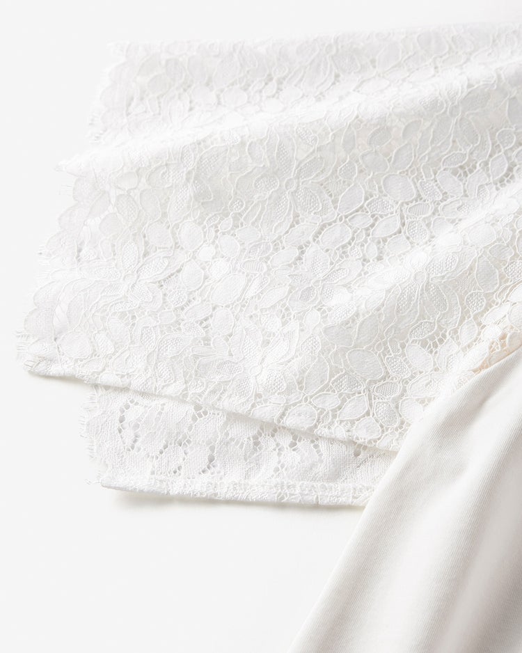 贅沢なレースが素敵、でもカジュアルに着まわせそう。白S購入(158㎝、50㎏)先ずはペパーミントグリーンのパンツと合わせるつもり。胴部分の裾が気になったのですが、Sサイズのだからかそれ程ダブつきもなく長さも いい感じです!